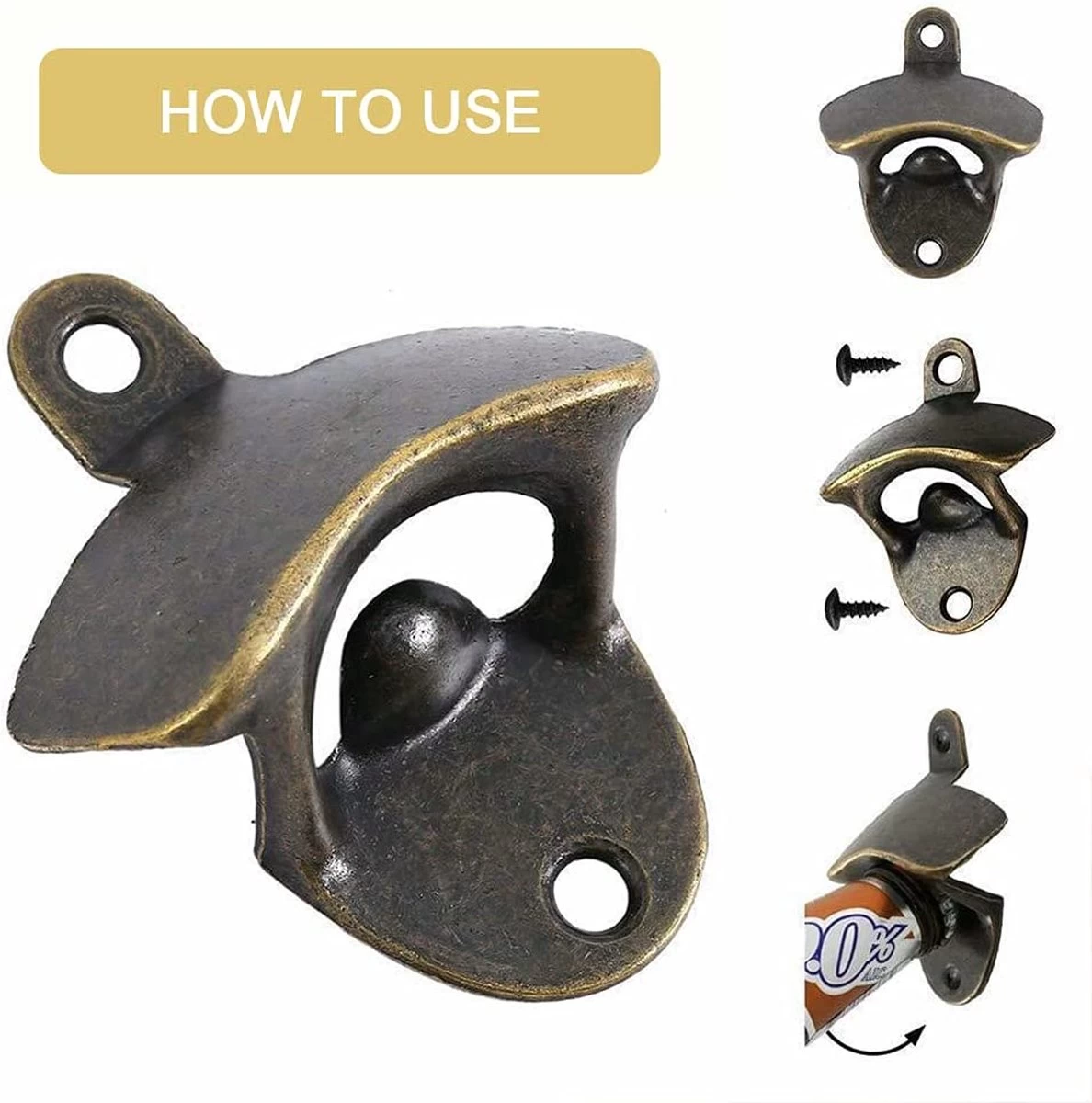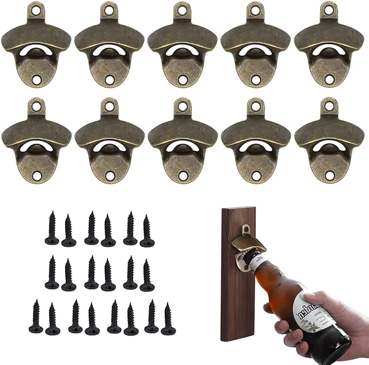 10 Pcs Ouvre-Bouteille Mural Ouvre-Bière Ouvre-Bouteille Mural Ouvre-Bouteille Mural Avec Vis Pour Bière Bar Restaurant Cuisine (Bronze)
