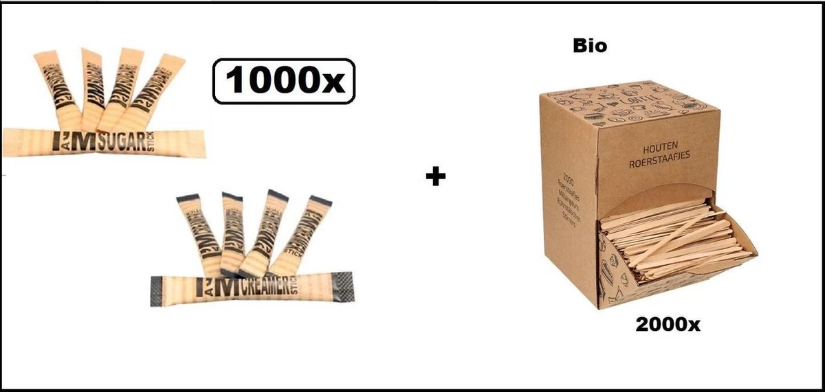 2000x agitateurs en bois BIO dans une boîte distributrice.