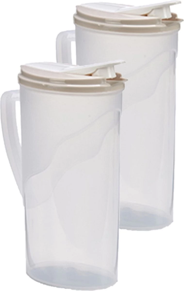2x Pichet à Eau/pichet à Jus Transparent/couleur Sable Avec Couvercle 1,8 Litre En Plastique – Pichet étroit Qui Tient Dans La Porte Du Réfrigérateur