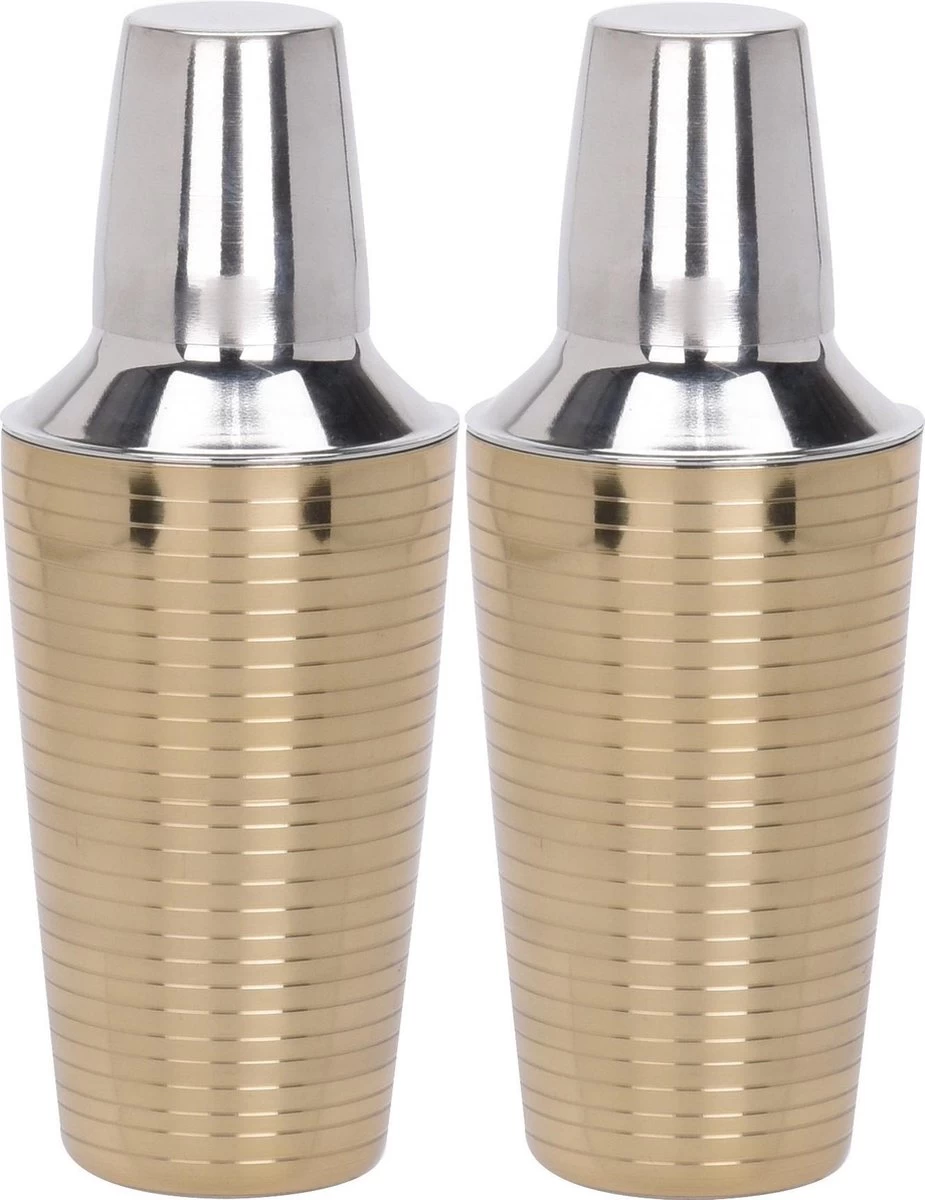 2x Shakers à cocktail dorés rayés 500 ml. Avec ce shaker, vous pouvez préparer les cocktails les plus délicieux très facilement et rapidement! Ajouter tous les ingrédients, bien agiter puis verser dans un verre. Dimensions: environ D9 x H22 cm. Contenu: environ 500 ml. Matériau : acier inoxydable. Nettoyage: Lavage à la main. Vous recevrez 2x pièces. Fournitures de cuisine – Fournitures de bar / café – Préparation de cocktails – Tasses à Mix/ secouer – Shakers à cocktail