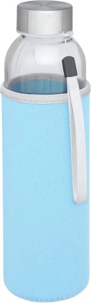 6x bouteille d’eau/bouteille en verre avec couvercle en softshell bleu clair avec poignée et bouchon à vis en plastique. Dimensions : environ D6 x H22 cm. Contenu : environ 500 ml, 50 cl. Poids: 265 grammes. Matière : verre trempé. Sans BPA : oui. Convient au micro-ondes : nee. Passe au lave-vaisselle : nee. Convient au congélateur : nee. La housse est lavable en machine.