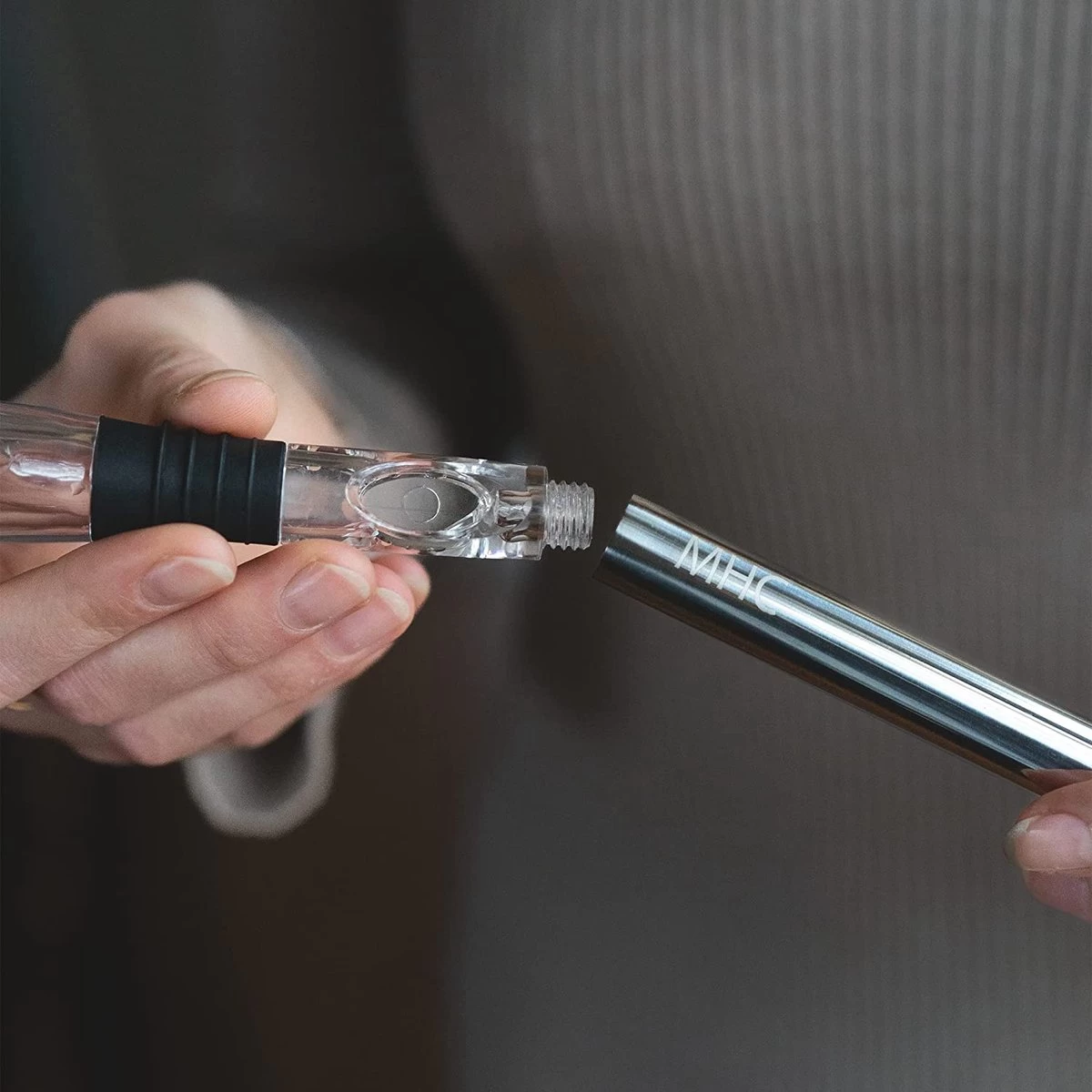 - Facile à utiliser – Placez le bâton de refroidissement au congélateur pendant environ une heure et vissez le bec verseur. Versez un demi-verre de la bouteille et insérez le refroidisseur. Profitez d’une température de vin agréable.
