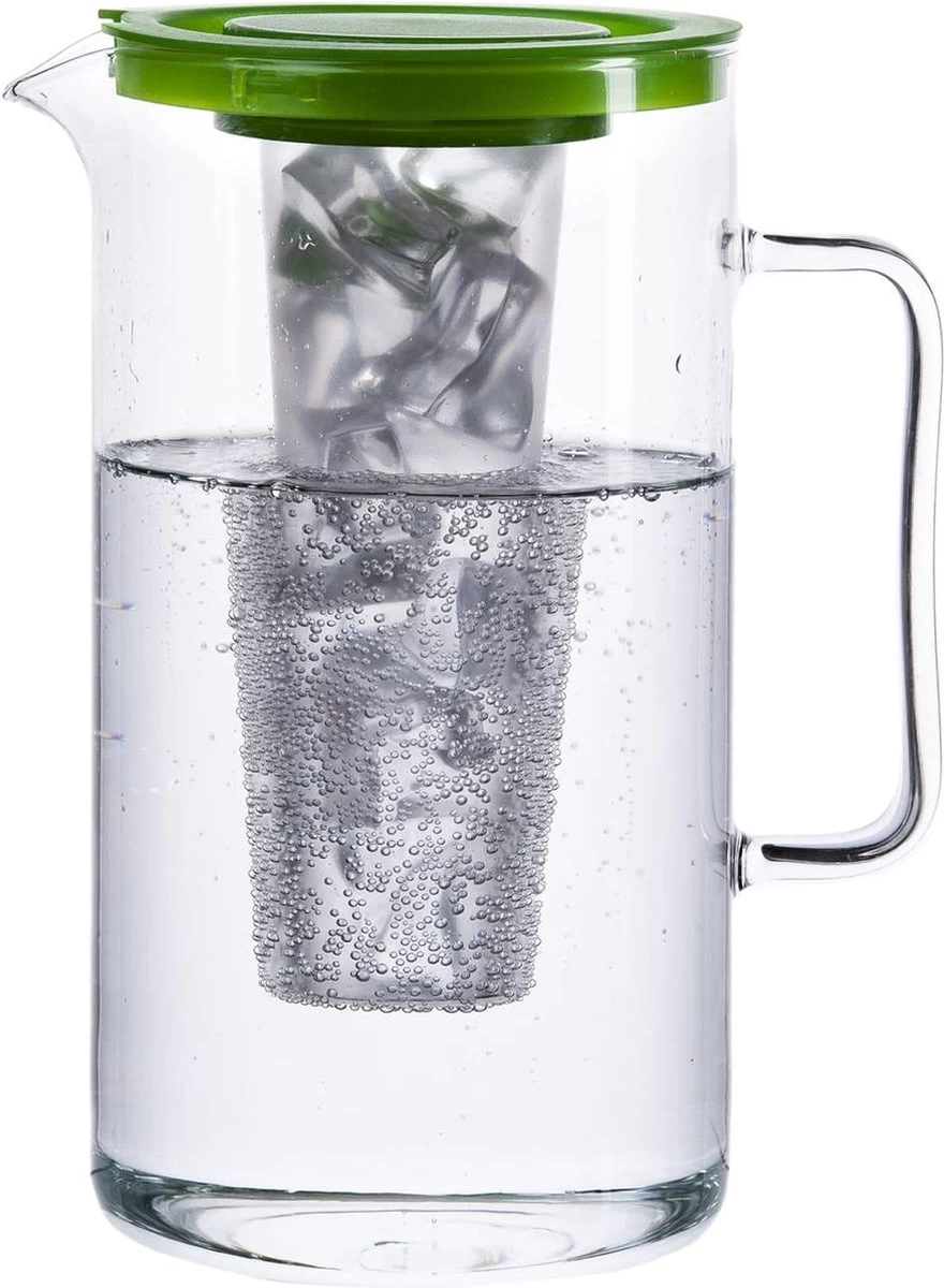 Bohemia Cristal 093 006 058 Carafe SIMAX D’environ 2,5 Litres. En Verre Borosilicaté Résistant à La Chaleur Avec Insert En Plastique Pour Glaçons Et Couvercle En Plastique Vert