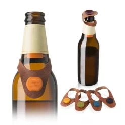 Marqueur Et Bouchon Pour Bouteille De Bière VacuVin – Cuir – Lot De 6