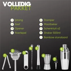Duerté Cocktail Shaker Set 16 Pièces Avec Livret De Recettes (750ml) Et Pilon – Bec Verseur