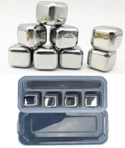 Pierres à Whisky En Acier Inoxydable – Ensemble Premium – Pierres à Whisky En Métal – 4 Pièces – SEC