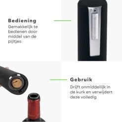 Tire-bouchon électrique Avec Bouchon à Vin Et Bec – Ouvre-bouteille électrique – À Piles – Zwart
