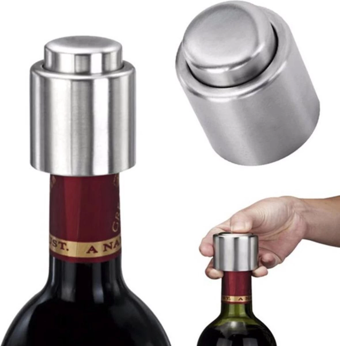 Ce Wine Stopper est idéal! Ce sera probablement votre première réponse dès réception. Ce bouchon de bouteille a une option supplémentaire que la plupart des bouchons de vin n’ont pas. À savoir aspirer la bouteille avec le bouton poussoir sur le dessus du bouchon.