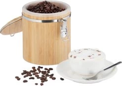 Boîte à Café Relaxdays Bambou – Boîte De Rangement – Hermétique – Fermeture à Clip – Avec Couvercle