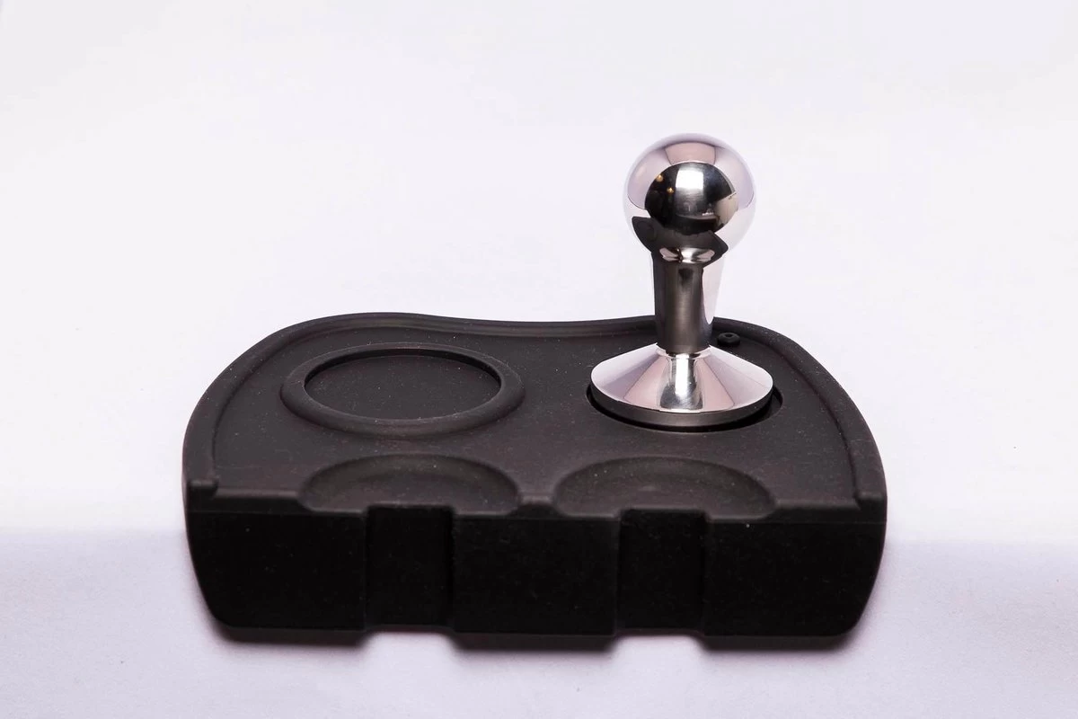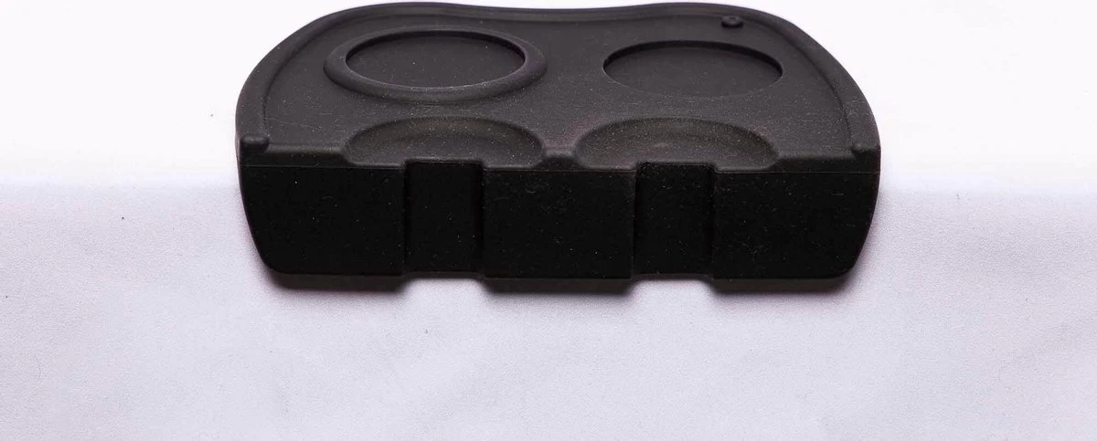 Un tapis de coussin en silicone luxueux avec un coin pratique. Le tapis empêche les égratignures et les dommages à la fois à votre pilon et à votre précieux bar / comptoir. Deux évidements ont été réalisés dans le tapis de bourrage pour les bourreurs ou les distributeurs. Placez le «coin» sur le bord pour éviter les décalages. Il y a un espace spécial dans le coin pour pousser votre porte-filtre lorsque vous appuyez sur. En bref, un tapis de bourrage idéal avec ce petit plus pour le vrai barista.