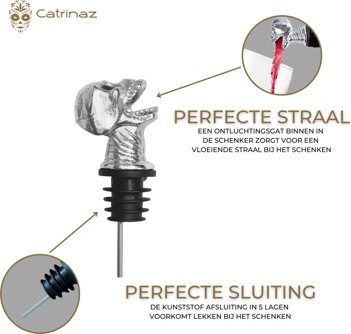 Utilisez ce bec verseur sur vos bouteilles préférées et faites-en l’accroche-regard de votre table. Après tout, les crânes sont extrêmement populaires. Le bec verseur avec son design unique en forme de crâne ne devrait certainement pas manquer ici. Idéal également pour voler la vedette lors de la préparation de cocktails.