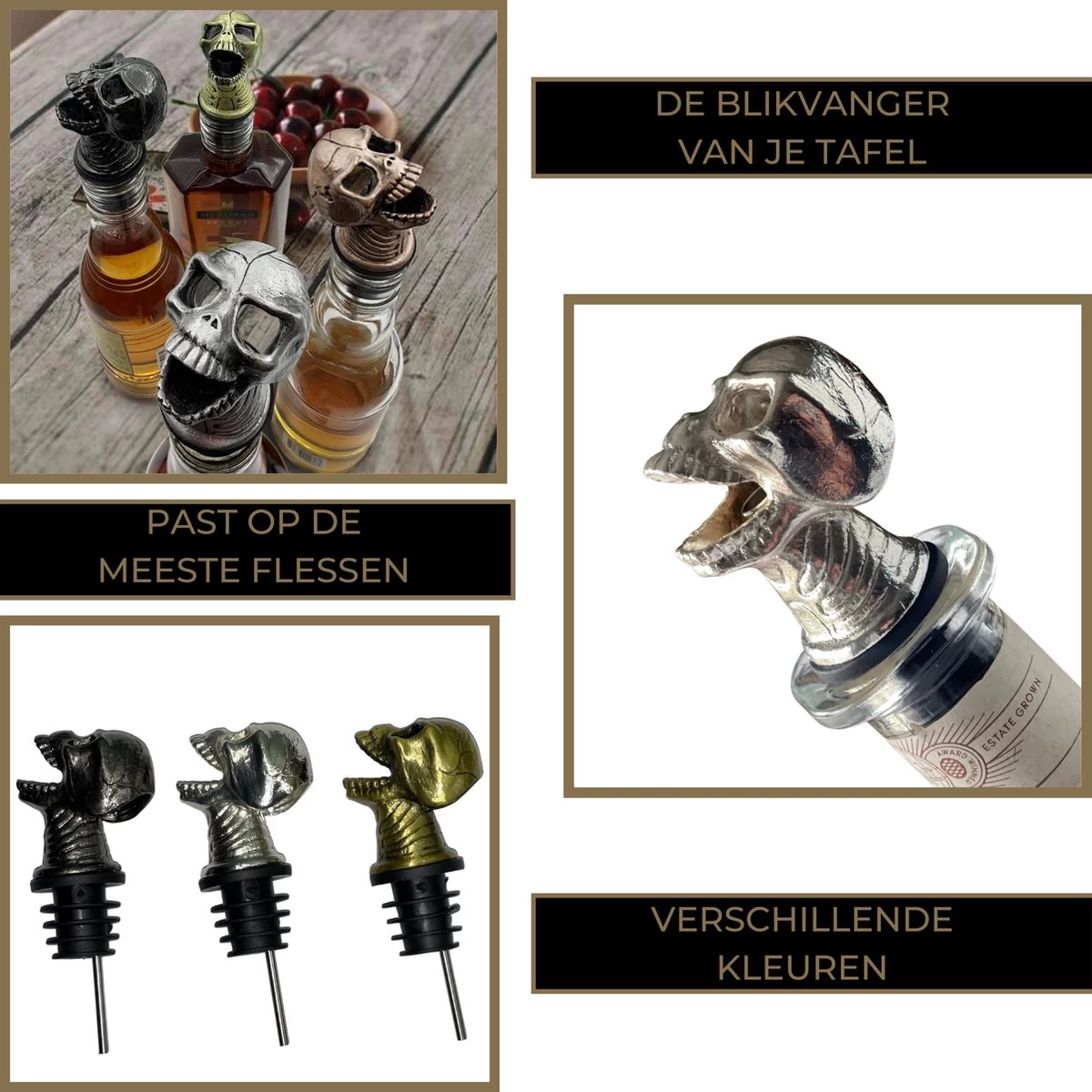 Tous les yeux rivés sur votre bouteille préférée pendant que vous versez, n’est-ce pas ce que tout le monde veut ? Avec ce verseur argenté en forme de tête de mort, vous réussirez certainement. Ce bec verseur est fabriqué en alliage de zinc et en silicone, sûr et durable. C’est un incontournable pour les amateurs d’une bonne bouteille de tequila, whisky, rhum, vin,…? Ben -vous passionné et avez-vous le souci du détail? Alors essayez définitivement ce bec unique!