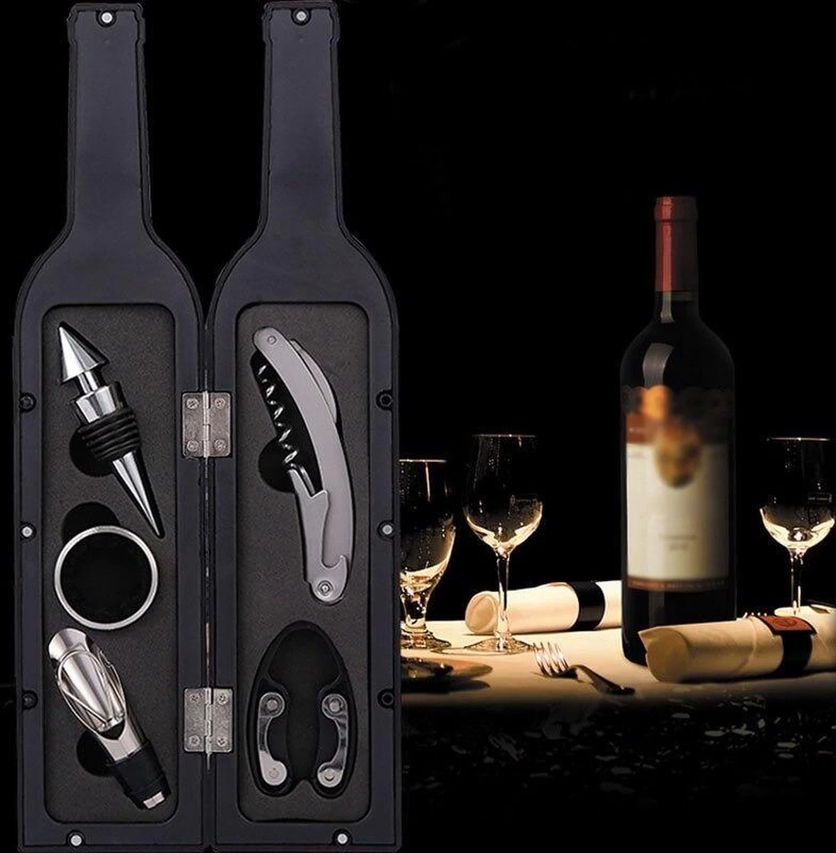 Avec cet ensemble spécial d’ouvre-bouteilles, vous pouvez facilement déboucher une bouteille de vin. De plus, l’ensemble offre un bec verseur luxueux et un anneau anti-goutte pour qu’il n’y ait pas de taches rouges sur la nappe. De plus, le film plastique est facile à retirer avec le décapant.