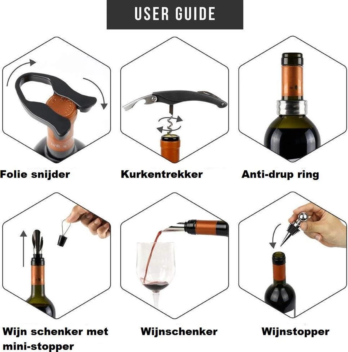 ✔ Découpez facilement le haut de la bouteille de vin avec le coupe-feuille de vin;