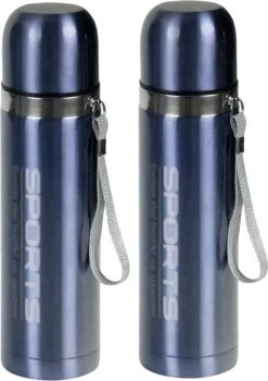 2x thermos métalliques / flacons isothermes en acier inoxydable bleu clair 500 ml. La bouteille isotherme de la marque Concorde avec le texte imprimé Sports possède une isolation sous vide à double paroi avec laquelle les températures chaudes et froides peuvent être maintenues. L’intérieur et l’extérieur sont en acier inoxydable. La bouteille a un bouchon à vis pratique qui peut être utilisé comme une tasse. Matériau : acier inoxydable. Dimensions : 7 x 7 x 24 cm. Contenu : 500 ml. Couleur: bleu clair.