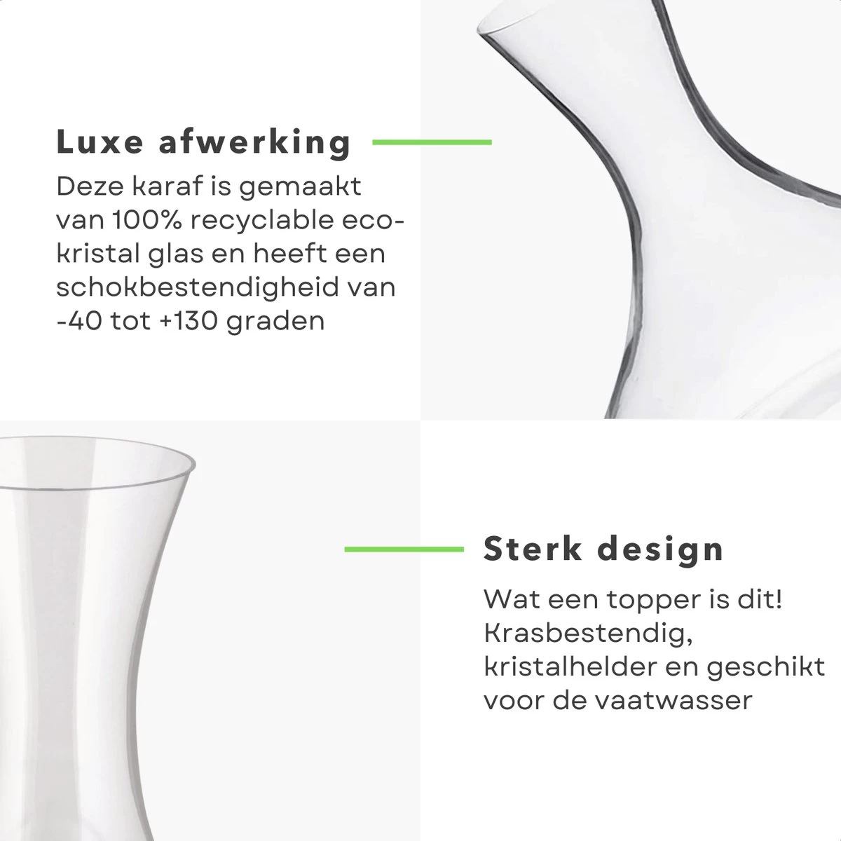 Verser votre vin devrait être une expérience luxueuse. Ce doit être un moment à savourer. C’est exactement ce que vous obtenez avec la carafe Cheqo Luxe . Cette belle carafe est fabriquée en verre éco-cristal, résistant aux chocs thermiques et 5 fois plus résistant que le verre ordinaire. Il est également limpide, ce qui vous permet de profiter pleinement de la couleur et de l’arôme de votre vin. La meilleure partie? Il va au lave-vaisselle pour que vous puissiez profiter de votre vin sans aucun tracas.