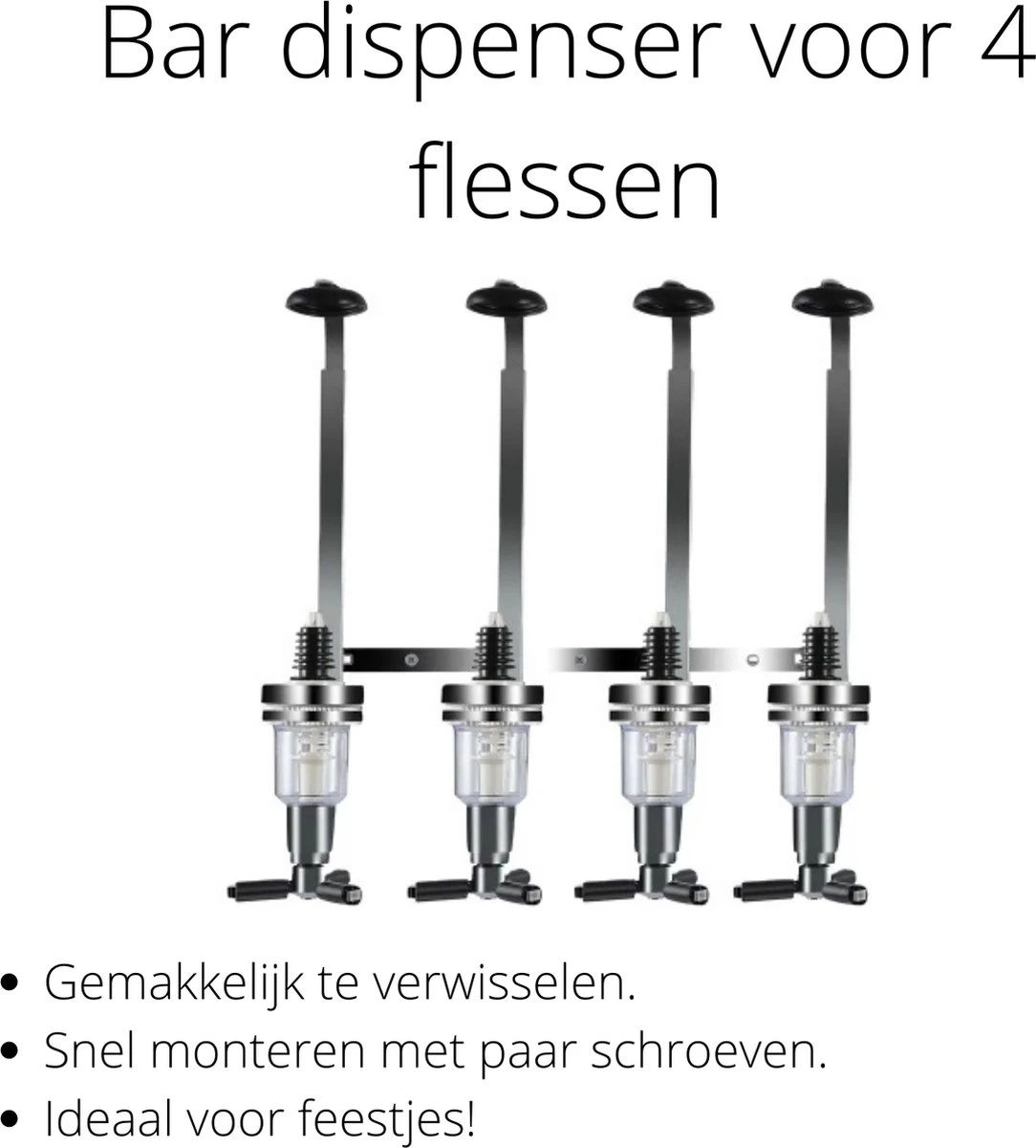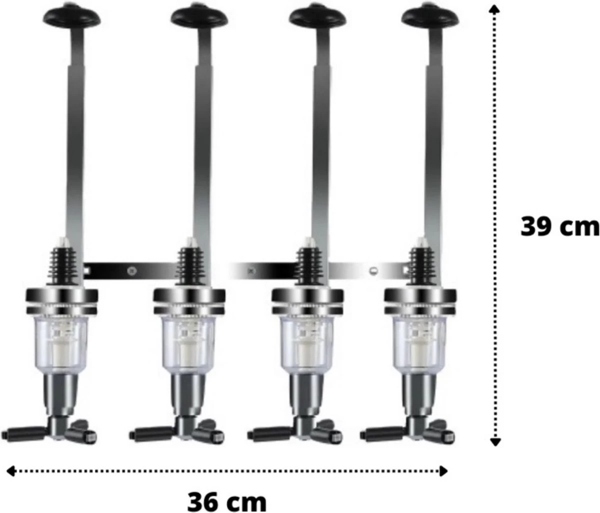 Ce distributeur de boissons convient aux bouteilles de 0 l et 1 l. La quantité par dose est de 30 ml et elle se remplit automatiquement pour la prochaine dose. Avec l’aide de ce distributeur de boissons, tout le monde devient un bon barman ou barman.