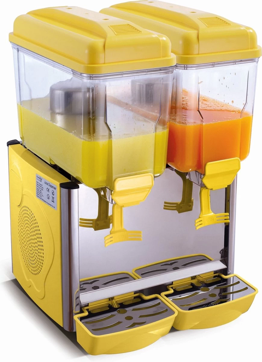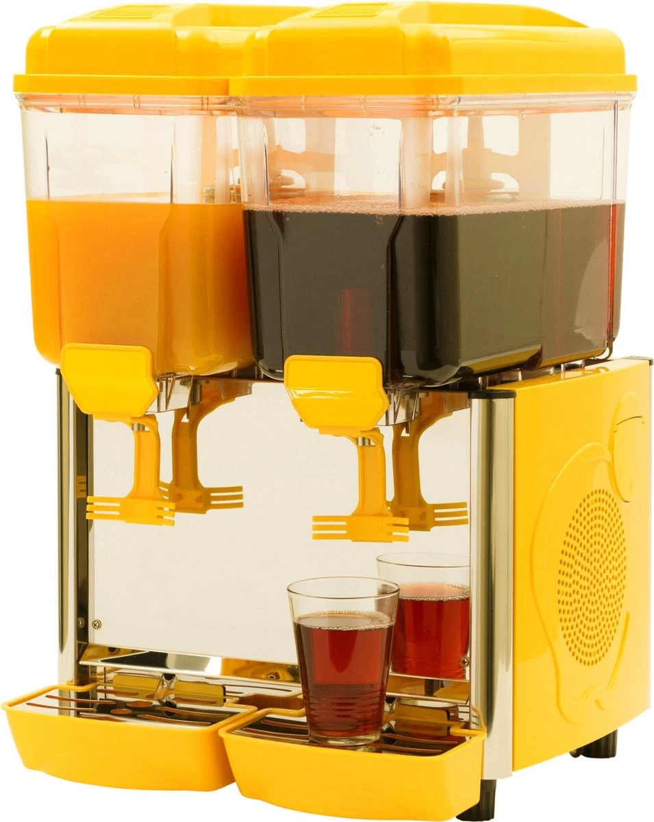 Une unité de boissons froides avec laquelle vous pouvez servir deux boissons différentes ! Ce distributeur de boissons fraîches, en jaune estival, je ne peux pas me tromper avec quoi que ce soit. Il attire immédiatement l’attention, est facile à nettoyer et sert des boissons à la température idéale. Le puissant compresseur assure le bon fonctionnement de tout.