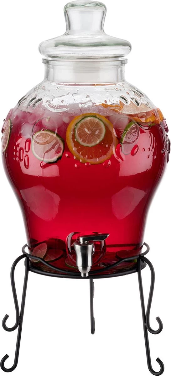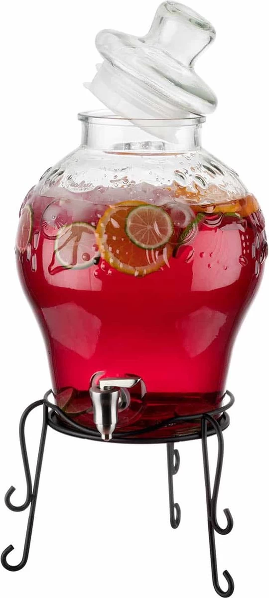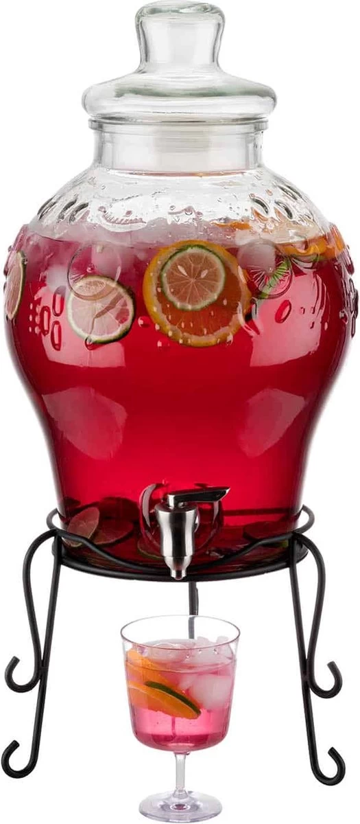Excellente idée pour votre garden-party! Préparez du thé glacé frais, de la limonade ou des cocktails dans ce grand distributeur de APS d’ APS- Allemagne. Avec une capacité de pas moins de 10,5 litres, c’est un accroche-regard lors de votre fête. Le robinet en acier inoxydable peut être facilement retiré en le tenant de l’intérieur et en le tournant de l’extérieur. Cela permet au robinet d’être nettoyé rapidement et facilement. Grâce à sa conception intelligente, le distributeur de boissons est facile à remplir avec des boissons et, par exemple: des fruits frais, des herbes ou des boissons alcoolisées.