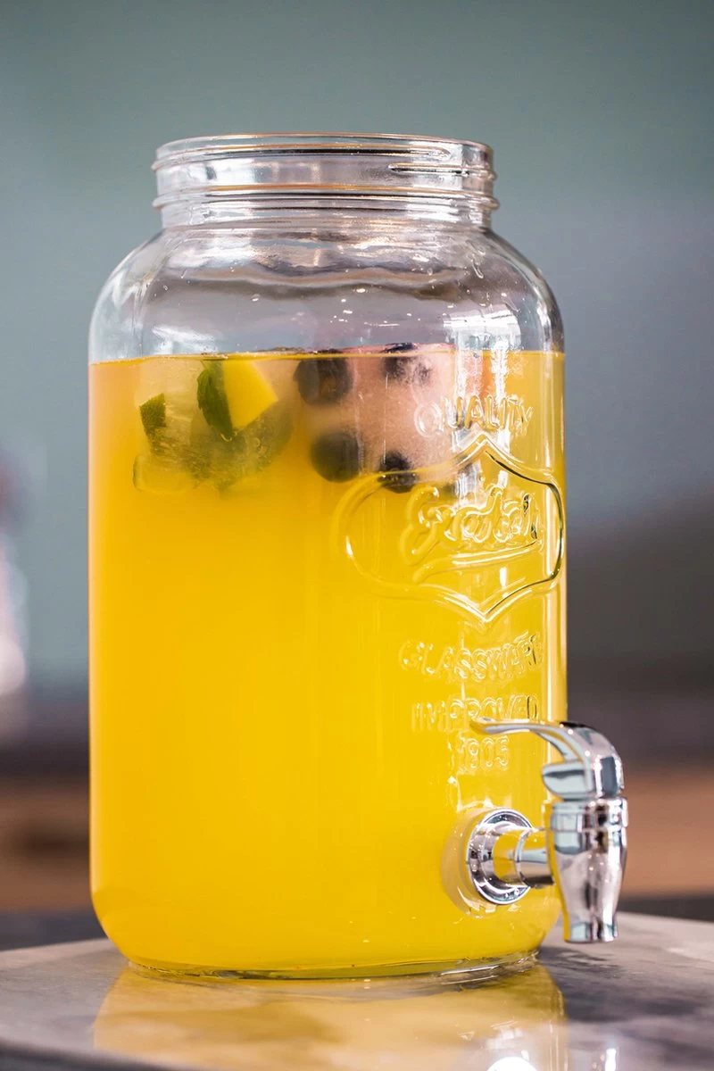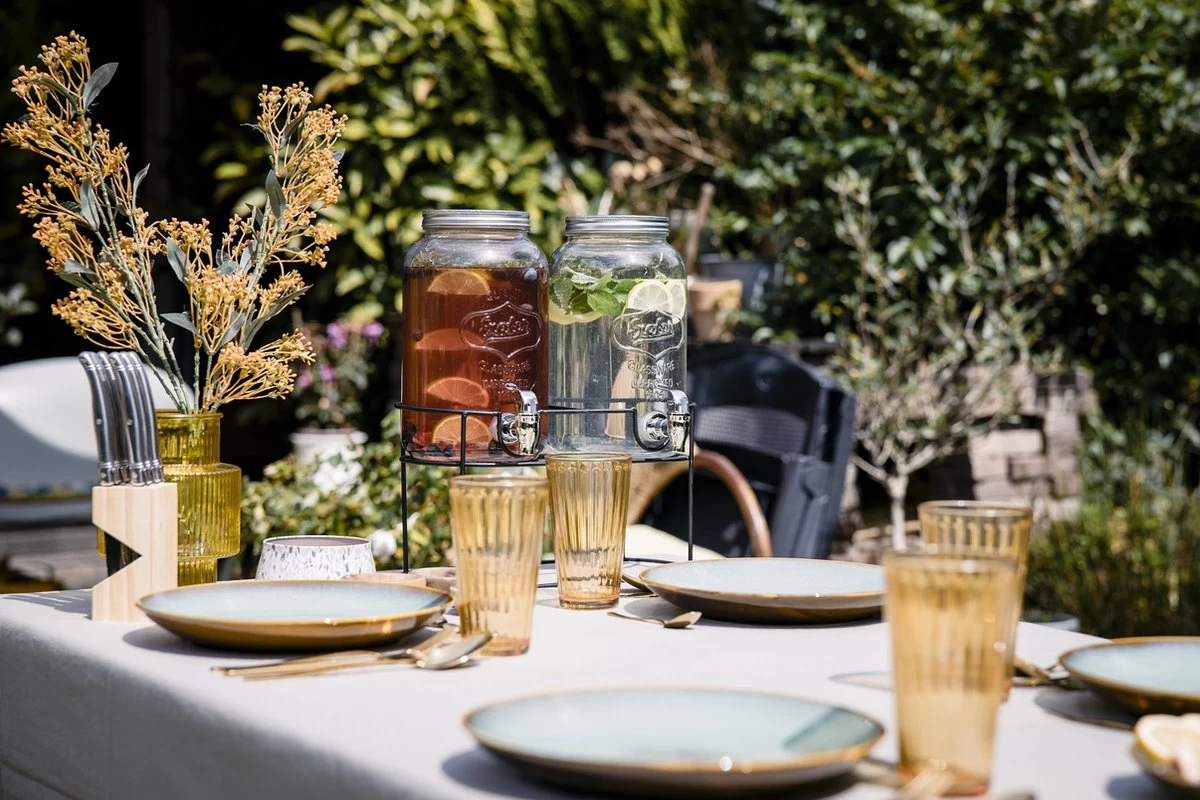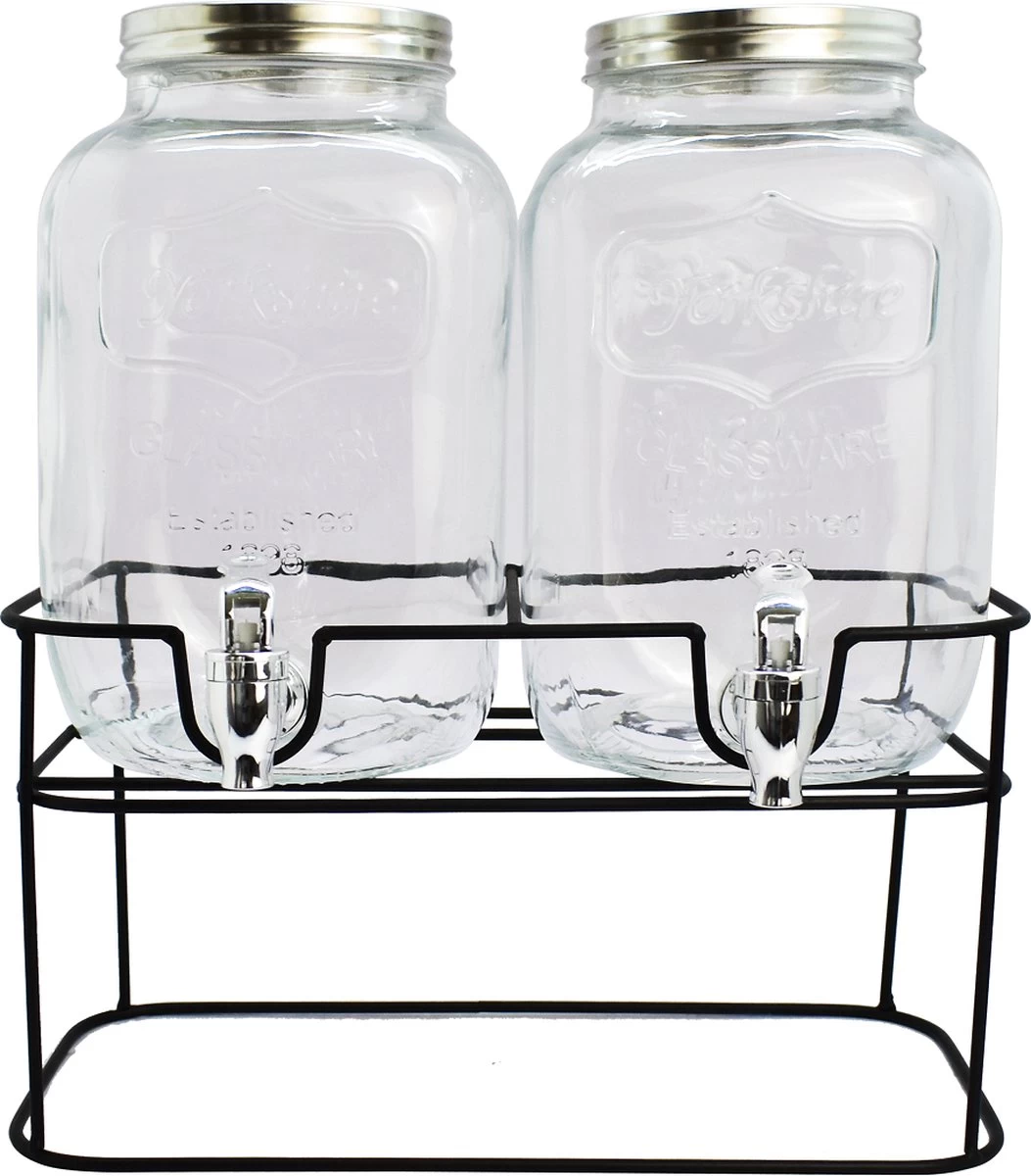 Cocktails, jus de fruits frais ou eau glacée : avec ce distributeur de boissons de la marque Sareva , vous pourrez puiser les boissons les plus délicieuses ! IIdéal à utiliser lors d’une garden-party ou d’un barbecue confortable. Les deux distributeurs ont une capacité de 6 litres et sont fabriqués en verre de haute qualité.Le distributeur de limonade ne va pas au lave-vaisselle. Vous pouvez nettoyer le distributeur de boissons Sareva à l’eau savonneuse tiède. Les distributeurs peuvent être placés dans le support en métal noir, de sorte qu’ils soient stables et stables.