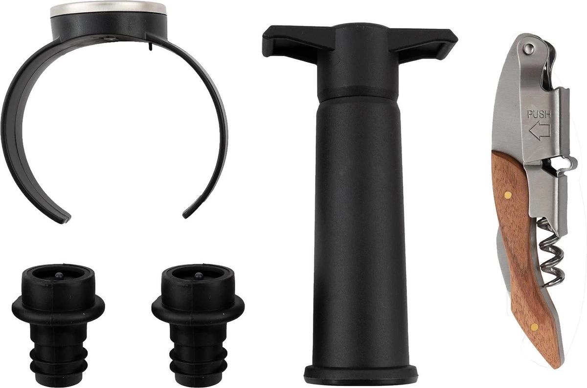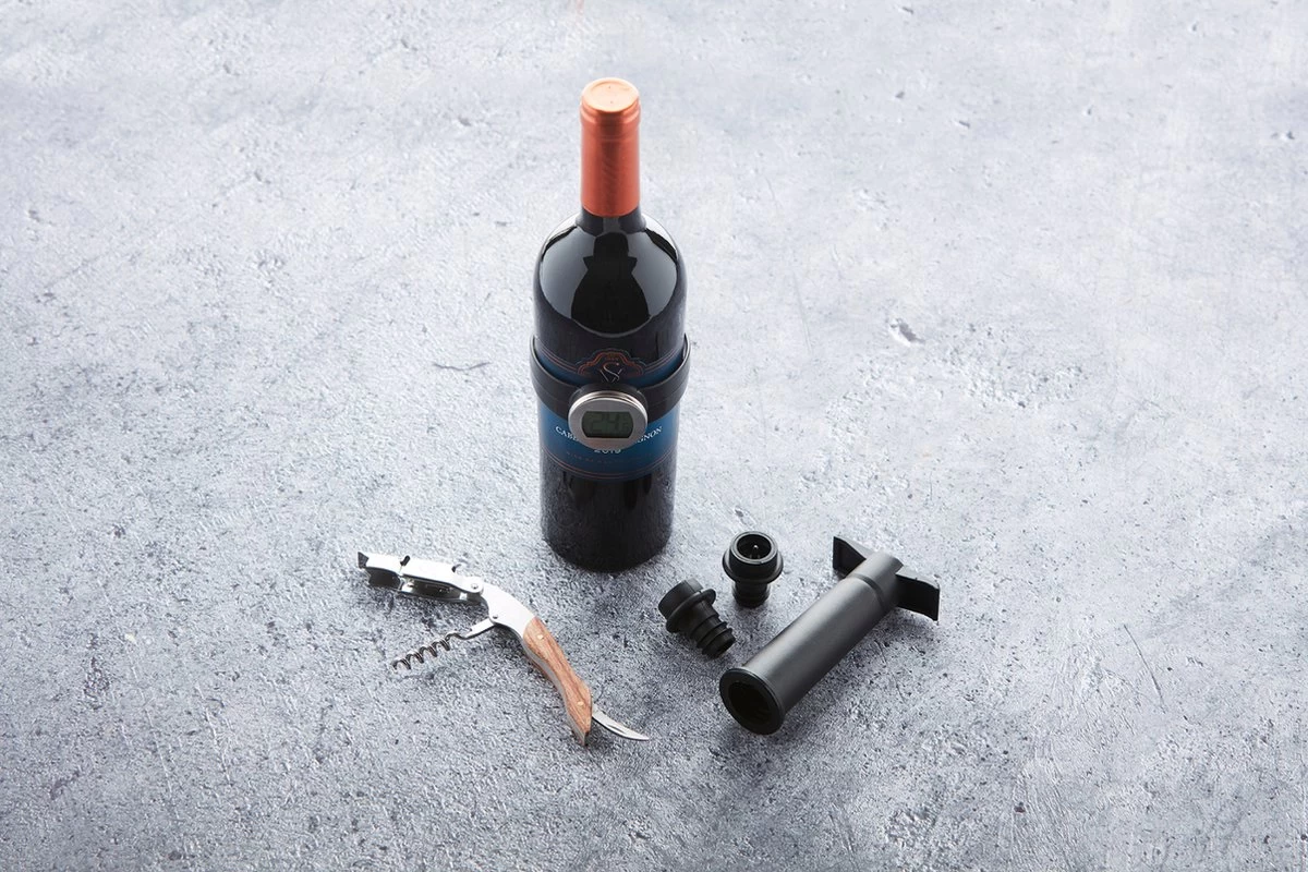 service à vin avec thermomètre à vin, couteau de sommelier, pompe à vide et 2 bouchons