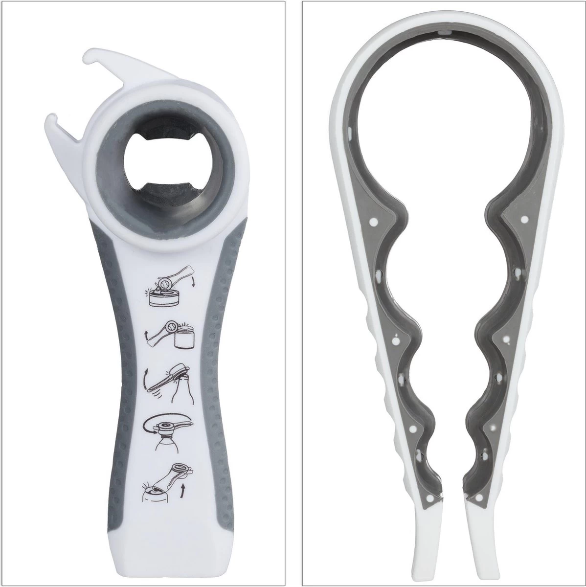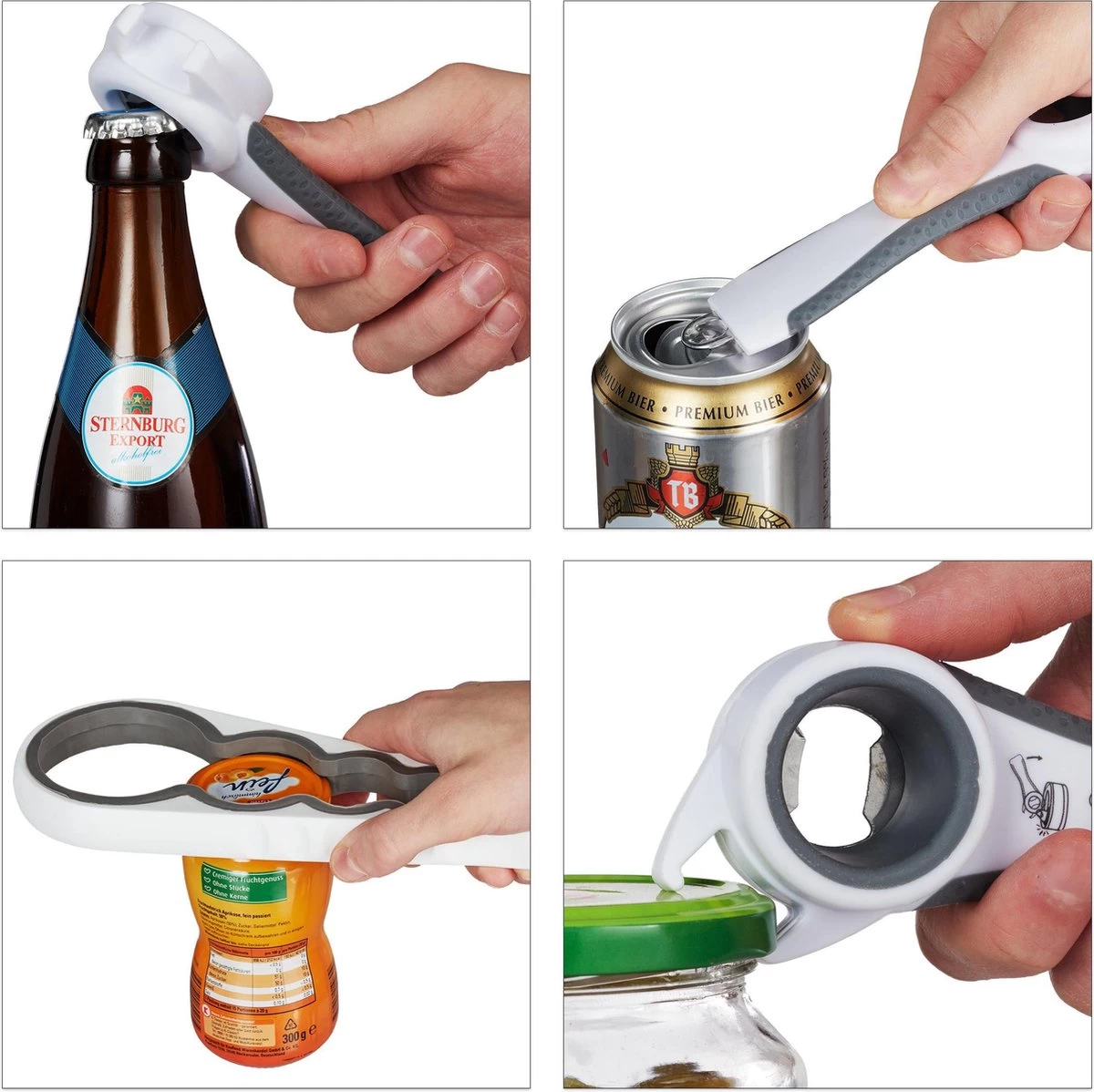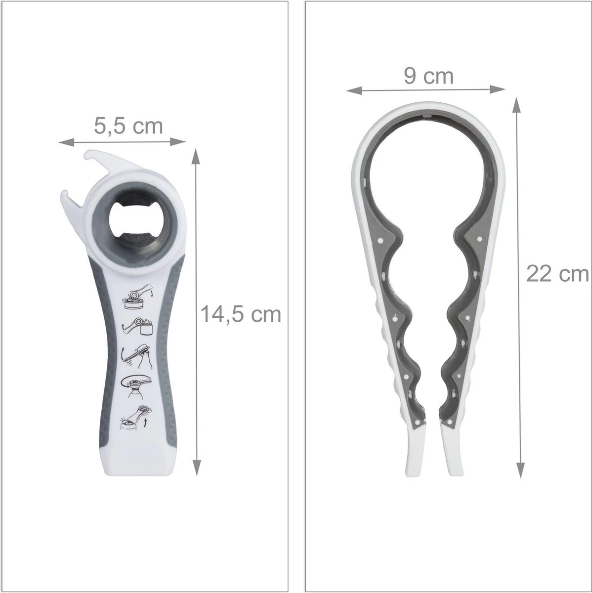 L’ensemble ouvre-porte universel est excellent car il est facile à utiliser, ce qui le rend particulièrement adapté aux personnes âgées ou aux personnes ayant peu de force dans les mains. L’ouvre-couvercle à vis doit seulement être placé autour du fermoir, pressé et tourné. Les boîtes peuvent être ouvertes en tirant sur l’anneau métallique avec la griffe ou en utilisant la fente. La pince permet également de desserrer les couvercles à vis, qui sont attachés aux bocaux en verre. Le couvercle à vis et les capuchons de couronne ne posent aucun problème avec l’ouvre-porte universel.