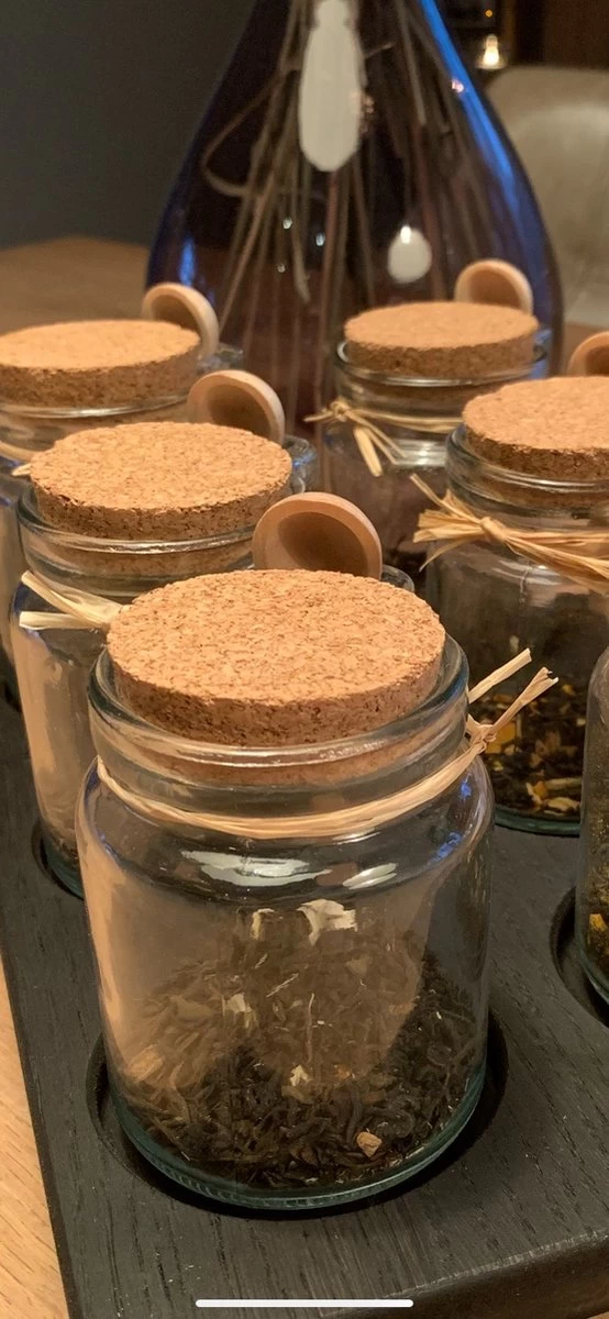 Ben aimez boire du thé et vous aimez présenter votre thé de manière ludique ? Alors, c’est vraiment pour vous. Vous pouvez ranger pas moins de 6 théières sur cette étagère à thé et les remplir de 6 types de thé différents. Nous livrons cette planche à thé comprenant les 6 pots avec cuillère en bois. Tout ce que vous avez à faire est d’ajouter du thé sec pour avoir un thé parfait l’après-midi. Nous fabriquons cette étagère à thé à la main à partir d’un matériau en feuille d’aspect chêne. Chaque étagère à thé est donc unique.