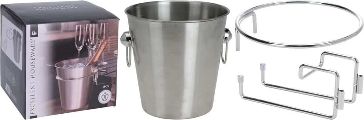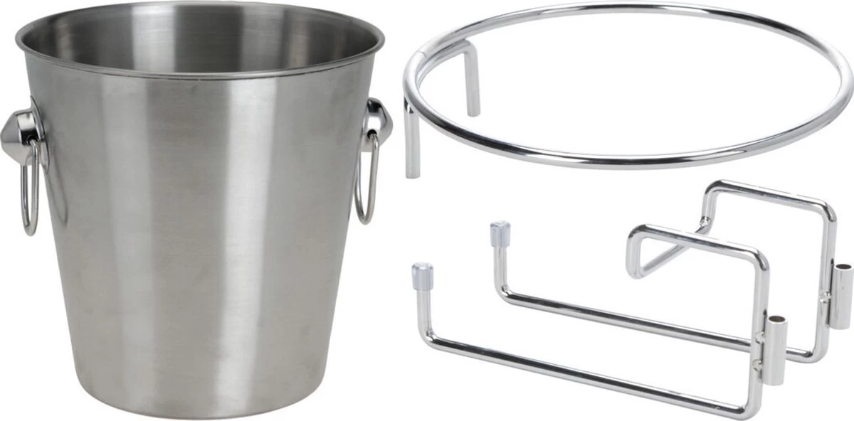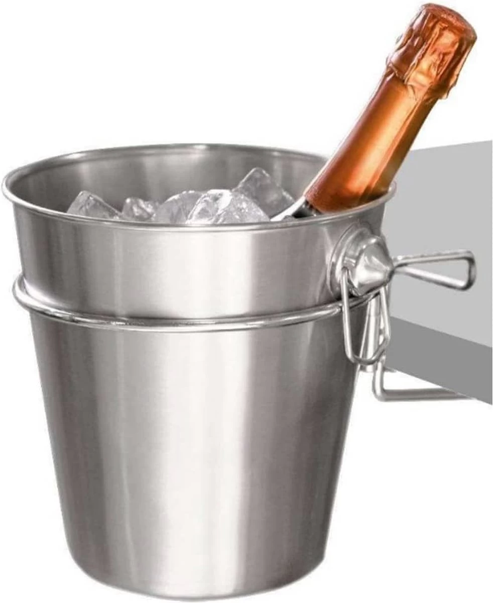 Cette glacière à vin-champagne ne convient pas seulement pour refroidir les bouteilles, mais peut également être utilisée comme seau à glace. La chose pratique à propos de ce refroidisseur à vin est que vous pouvez facilement le fixer, par exemple, à un dessus de table ou à un comptoir. Vous pouvez bien sûr également le placer.