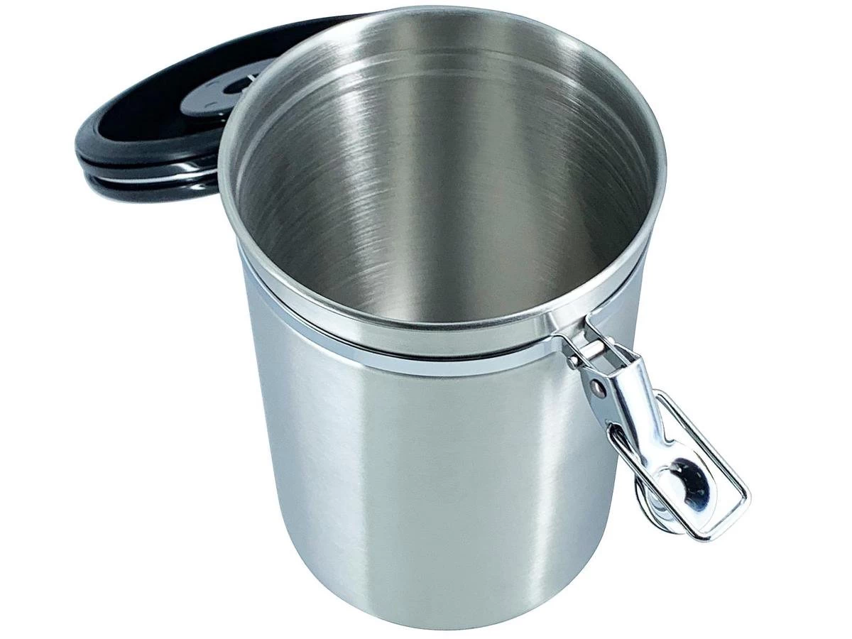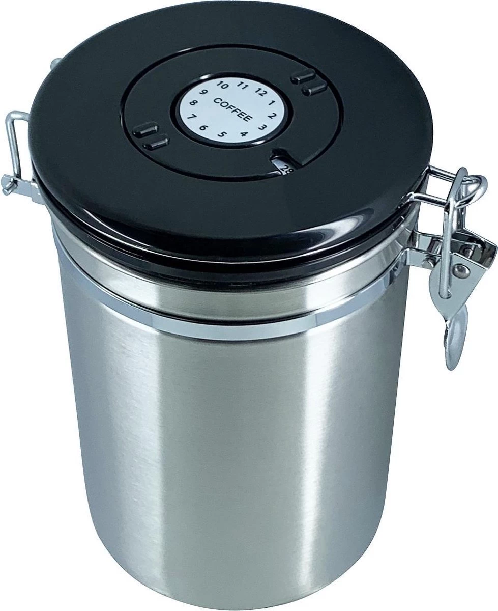 Pour un café parfait, non seulement la bonne préparation et le bon grain sont décisifs, mais aussi le bon stockage. Notre café en acier inoxydable Ermetica espresso écarlate hermétique peut garder vos grains frais et aromatiques pendant longtemps. Lorsqu’elles ne sont pas stockées correctement, par exemple au contact de l’oxygène, les huiles, graisses et cires contenues dans le café s’oxydent, de sorte que le café change progressivement et perd son arôme. Le café n’est pas compatible avec l’air, la lumière, la chaleur et l’humidité. Les grains sont stockés en toute sécurité et protégés contre ces influences dans notre boîte de café. En règle générale, après la torréfaction du café, du dioxyde de carbone est libéré. C’est un processus naturel. L’emballage du sac standard contient de petites valves d’arôme qui permettent au dioxyde de carbone de s’échapper. Nos boîtes à café ont une valve spéciale intégrée dans le couvercle, de sorte que le dioxyde de carbone puisse s’échapper même après la décantation.