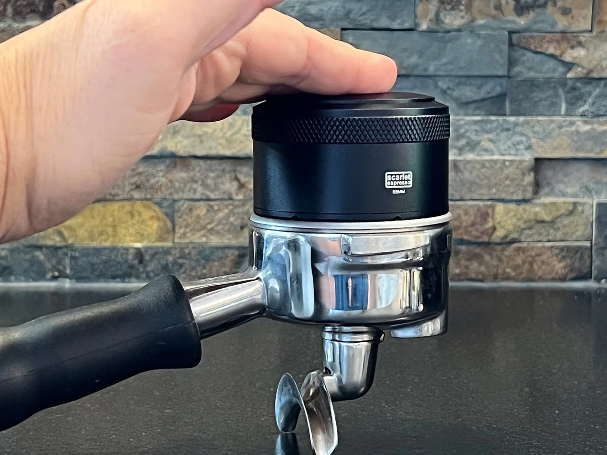 Si vous ne faites pas attention, vous pouvez rapidement tenir le pilon à un angle inégal lors de la pression, ce qui entraîne une rondelle de café de travers. L’eau cherche le chemin de moindre résistance et a donc tendance à s’écouler du côté plat. Le résultat est une extraction inégale.