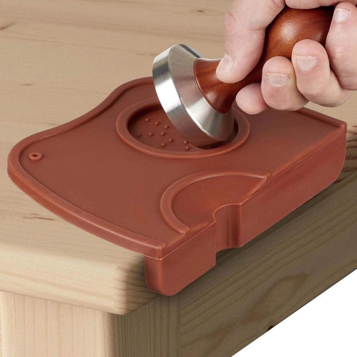 Le épais et extrêmement robuste plateau de pulvérisation espresso écarlateespresso écarlate «Barista» en silicone alimentaire offre une excellente protection de votre surface de travail contre les dommages causés par les supports d’écran et les altérations.