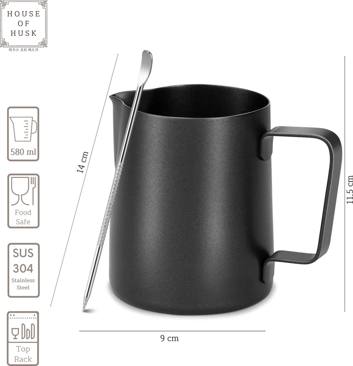 Le pot à lait est fabriqué en acier inoxydable durable, ce qui rend le pot à lait solide, mais aussi léger. Les parois minces assurent une répartition progressive de la température. Ici, le lait dans son ensemble atteindra plus rapidement une température idéale. En raison de la forme du pot à lait, vous pouvez facilement fouetter le lait et le verser facilement pour créer un magnifique latte art. Vous souhaitez travailler de manière encore plus créative ? Tous nos pots à lait sont livrés avec un véritable stylo d’art barista !