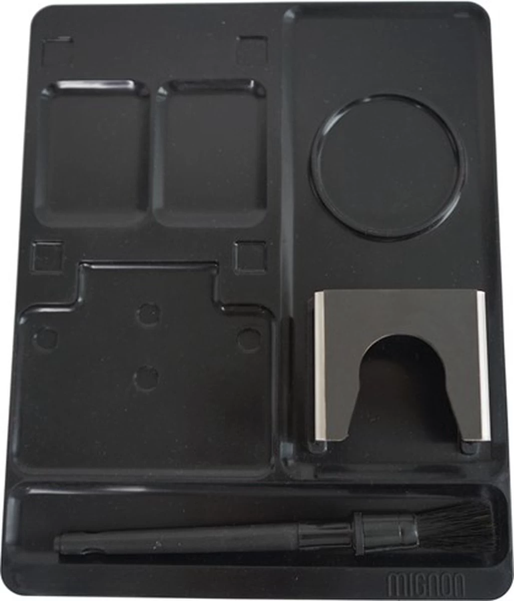 Il vous aide à presser vos cafés plus facilement (avec une station de tassage compatible avec tous les porte-filtres du marché) et à mieux protéger la table et votre environnement de travail, en gardant votre coin Mignon propre ;