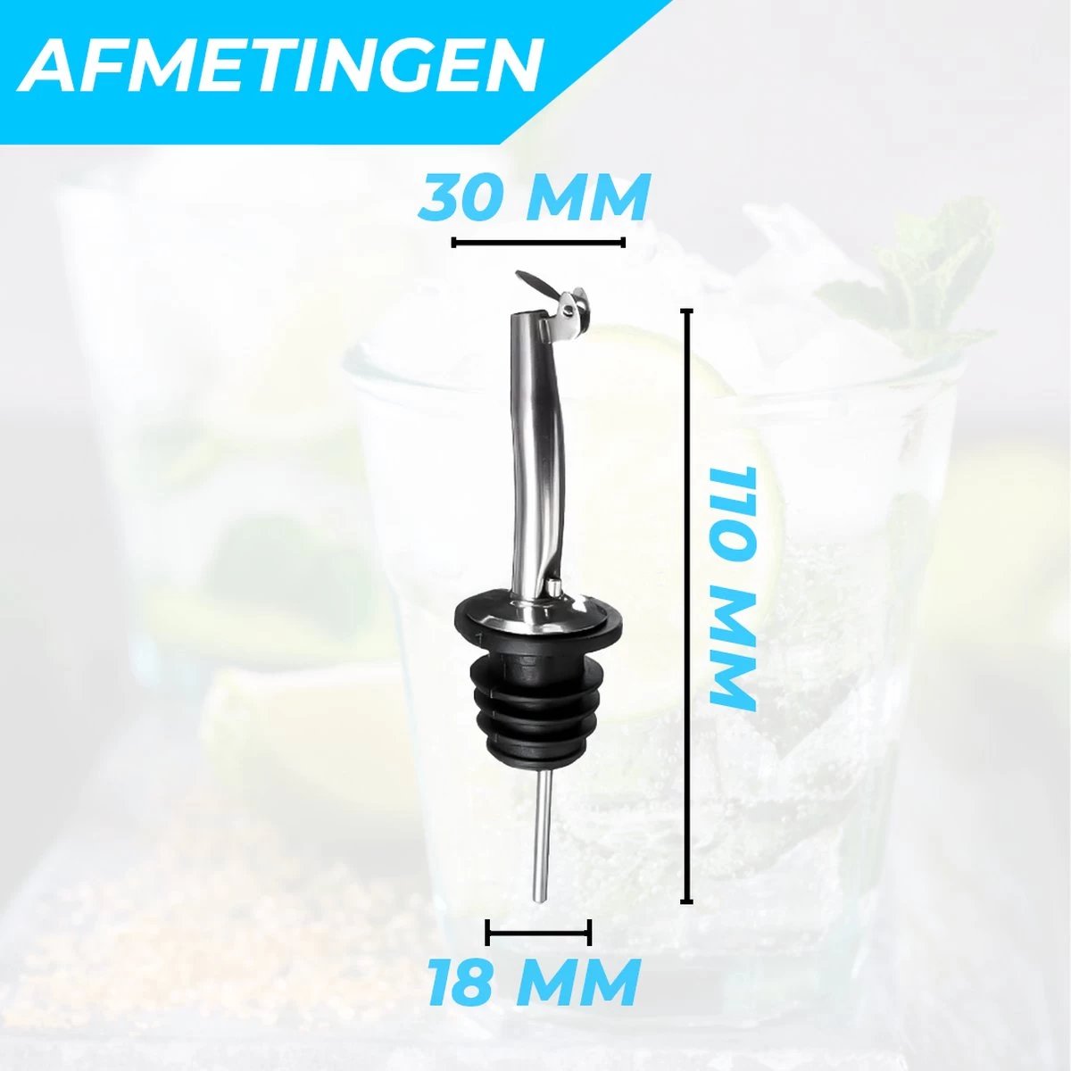 Avec ce bec verseur pratique, l’alcool n’est plus jamais gaspillé. Versez toujours la bonne quantité d’alcool avec une grande précision. Les bouchons contiennent des trous supplémentaires pour que la bouteille n’aspire pas le vide et verse constamment la même quantité. Difficile de faire plus économique et précis !