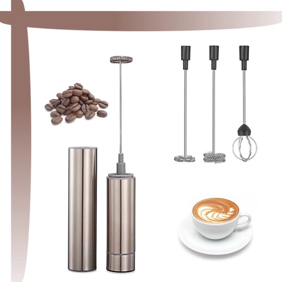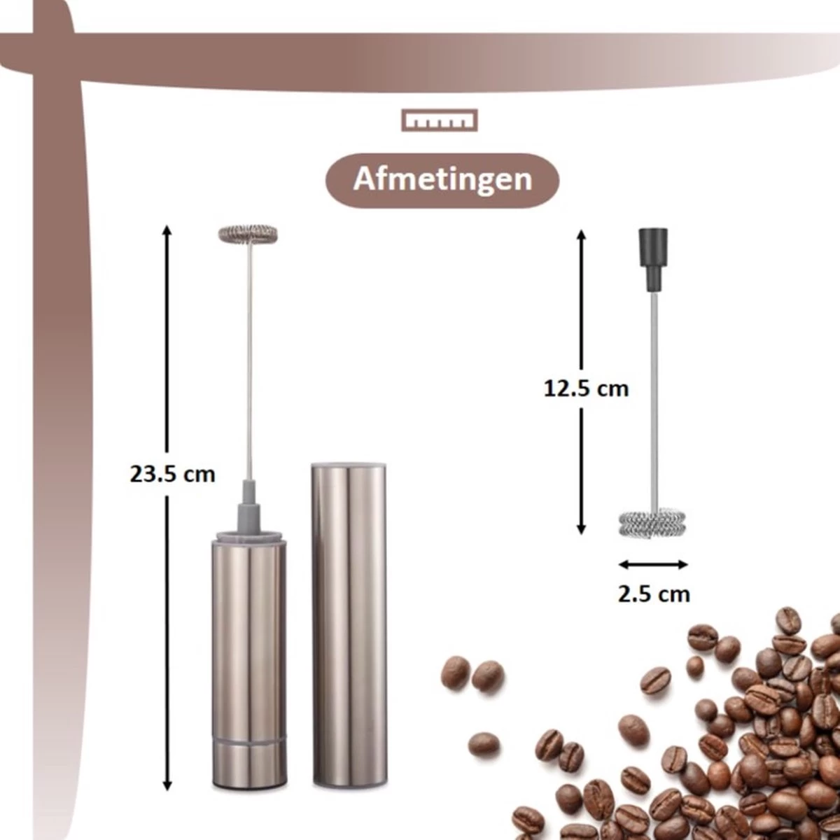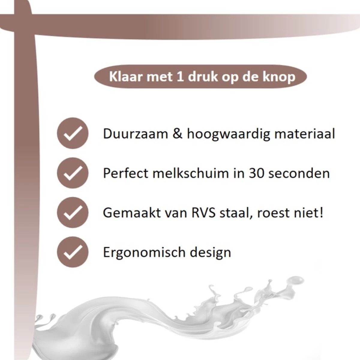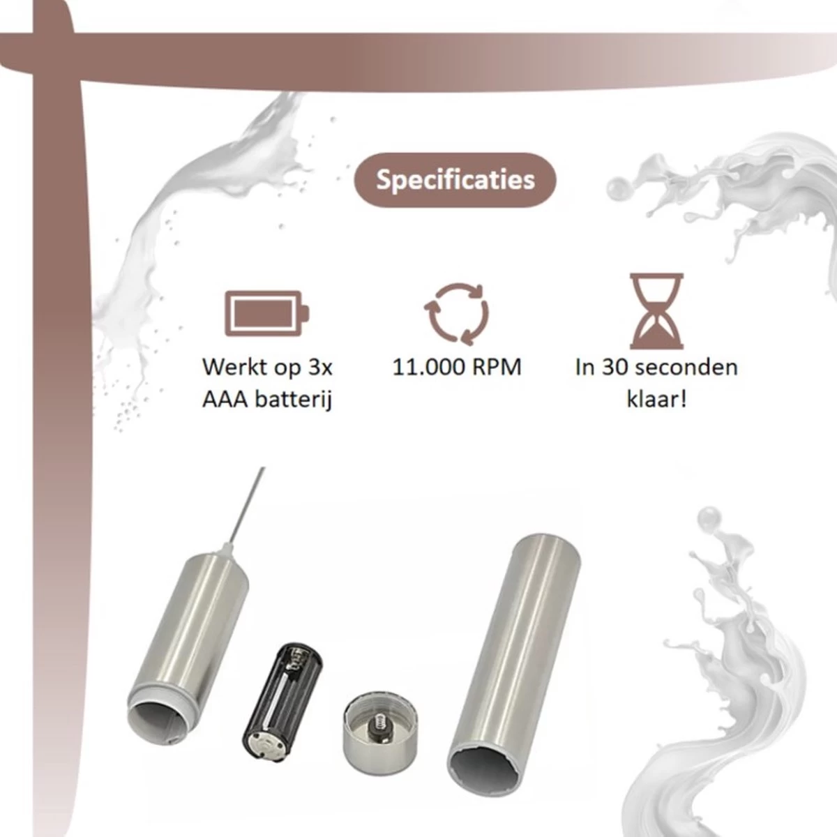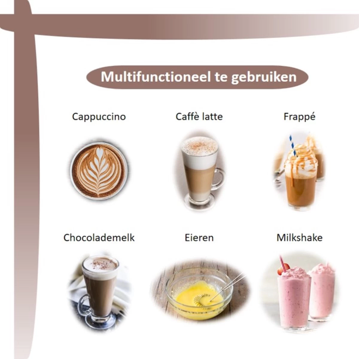 Le mousseur à lait est livré avec 3 accessoires différents. Chaque pièce jointe a sa eigen fonction ; le mousseur à 1 couche est destiné à produire de la mousse de lait pour 1-2 personnes/tasses. Le mousseur à 2 couches peut être utilisé pour la mousse pour 3 personnes ou plus. Le 3ème accessoire est un mini fouet qui peut être utilisé de manière multifonctionnelle, par exemple pour battre des œufs ou pour préparer de la pâte.