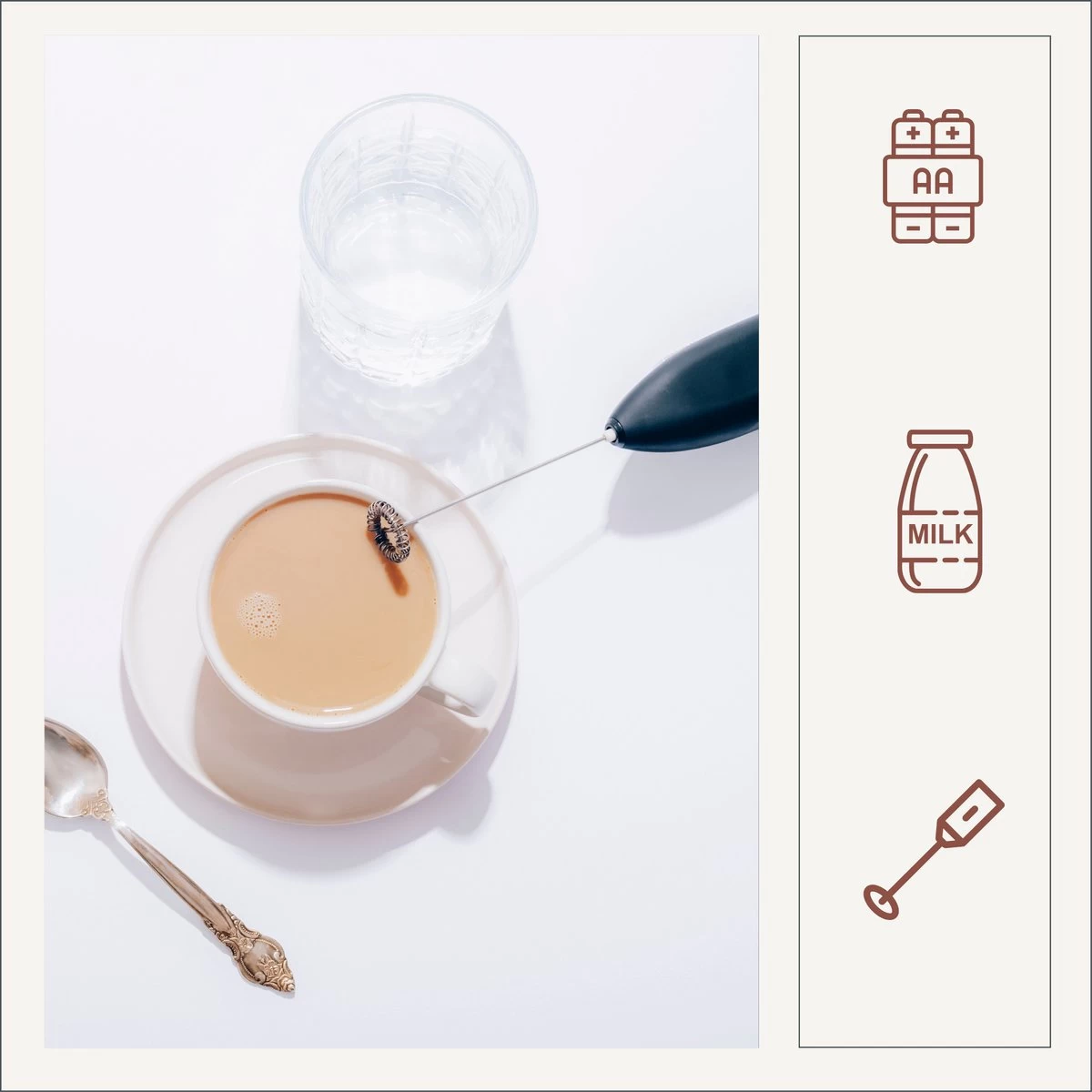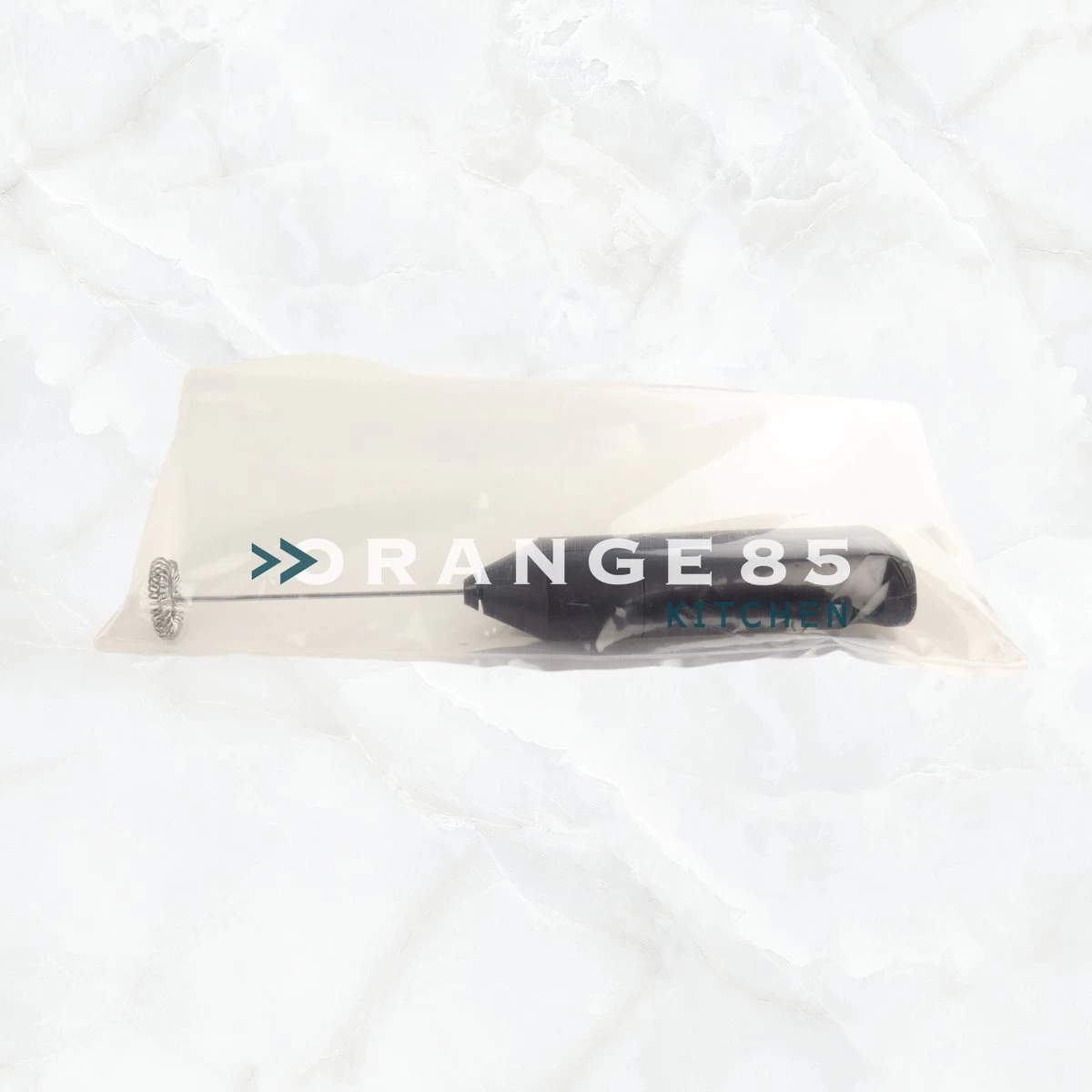 Le mousseur à lait Orange85 est facile à utiliser et tient confortablement dans la main. Le mousseur à lait est de couleur noire.