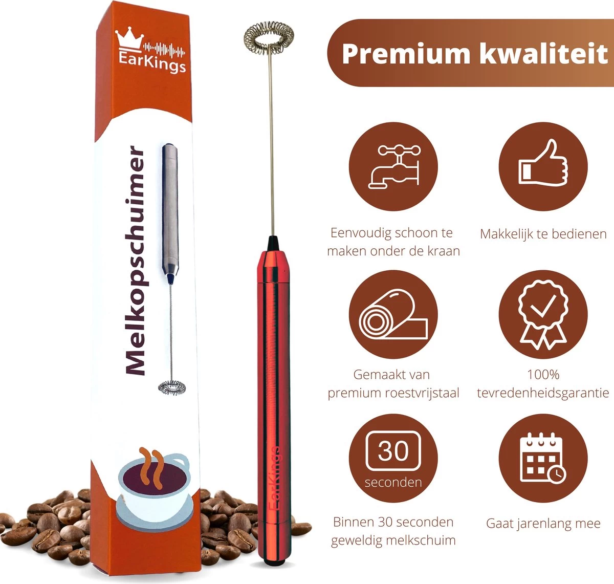 Vous aimez une bonne tasse de café ou de cappuccino avec un joli col en mousse de lait, mais vous n’arrivez pas à faire mousser le lait correctement ? Alors un mousseur à lait Earkings est la solution idéale voor jou!