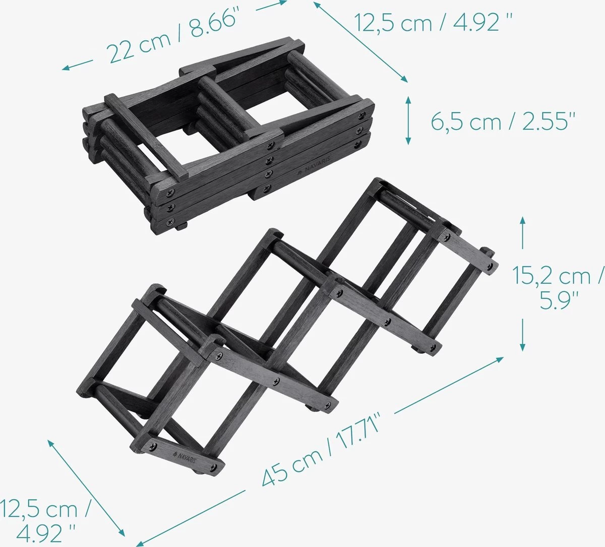 - Dimensions déplié : 45 x 12 x 15,2 cm