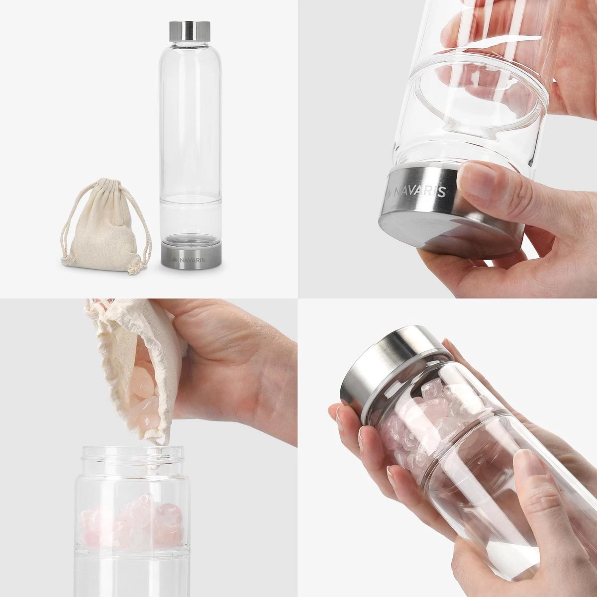 - DESIGN ORIGINAL: Les pierres de quartz rose à l’intérieur donnent à la bouteille un look spécial. Les gemmes peuvent être facilement enlevées et nettoyées.