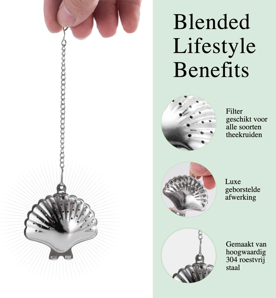 L’œuf de thé Blended Style de vie est fabriqué en acier inoxydable 304 de haute qualité, ce qui signifie que l’odeur et le goût de votre thé restent inchangés, contrairement aux œufs de thé en plastique. De plus, la passoire à thé de Blended Style de vie au lave – vaisselle et donc facile à nettoyer après avoir bu votre tasse de thé. De plus, l’infuseur à thé est livré avec une plaque d’égouttement Blended Style de vie , de sorte que votre infuseur à thé ne laisse aucune trace d’eau après l’avoir retiré de votre verre ou de votre théière !