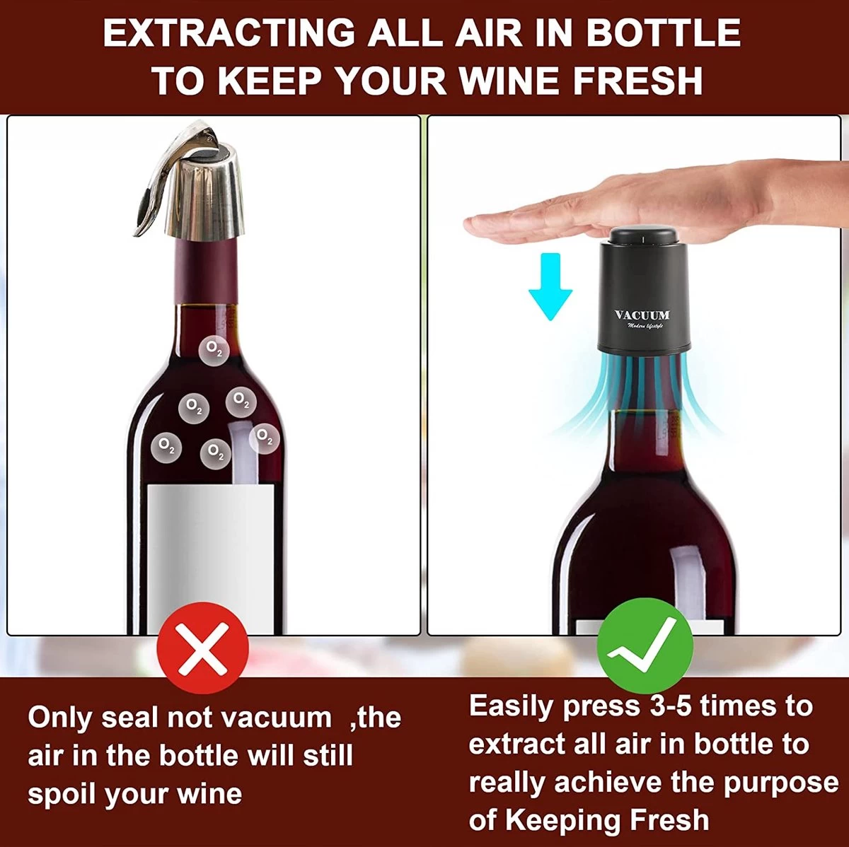 La pompe à vide peut facilement éliminer l’air des bouteilles de vin et garder le vin frais jusqu’à une semaine !