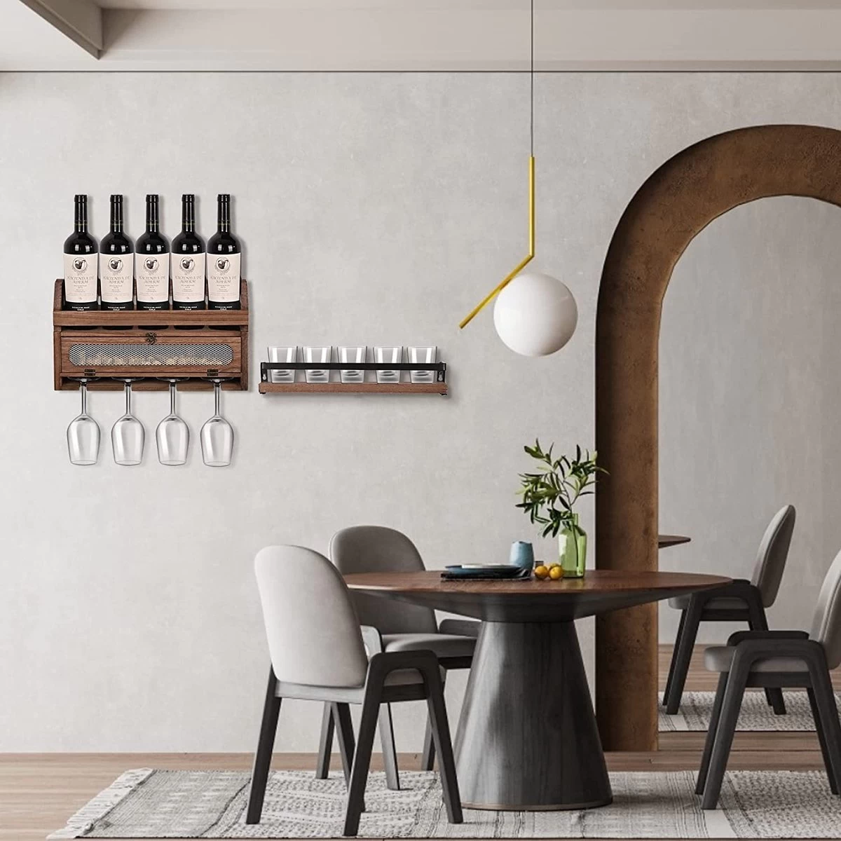 - Facile à utiliser : Ce casier à vin est pré-assemblé, il peut être fixé au mur sans difficulté. La conception suspendue peut économiser plus d’espace sur le plan de travail. Avec ce support à vin mural, vous pouvez parfaitement ranger du champagne délicat, du vin, du bourgogne, du riesling.