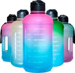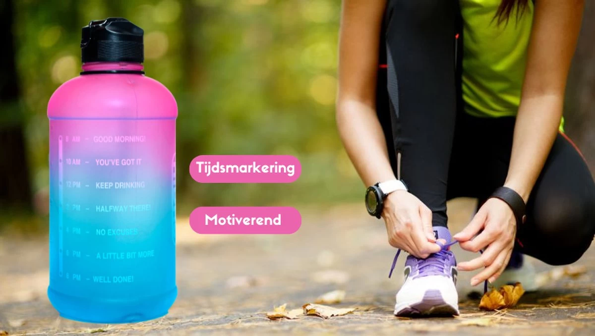 La bouteille contient des marqueurs de temps et un texte de motivation. Les marqueurs de temps vous garantissent une hydratation constante tout au long de la journée. Vous avez du mal à faire entrer suffisamment d’eau ? Ensuite, le texte peut vous encourager à boire la bouteille après tout. Ces deux spécifications vous aideront à vous rappeler de boire et de rester hydraté toute la journée !