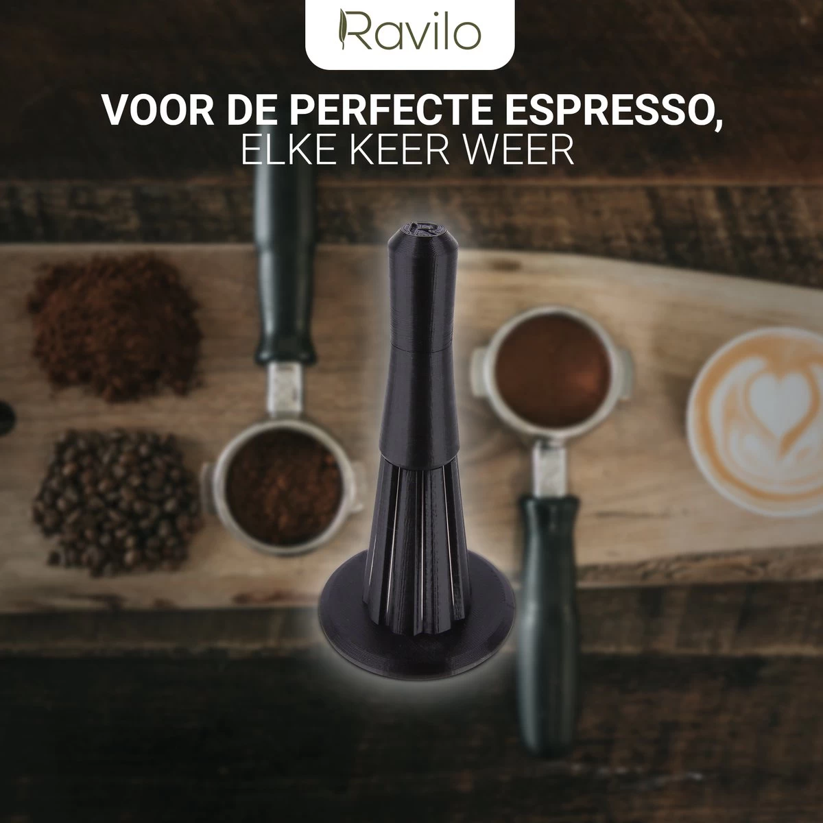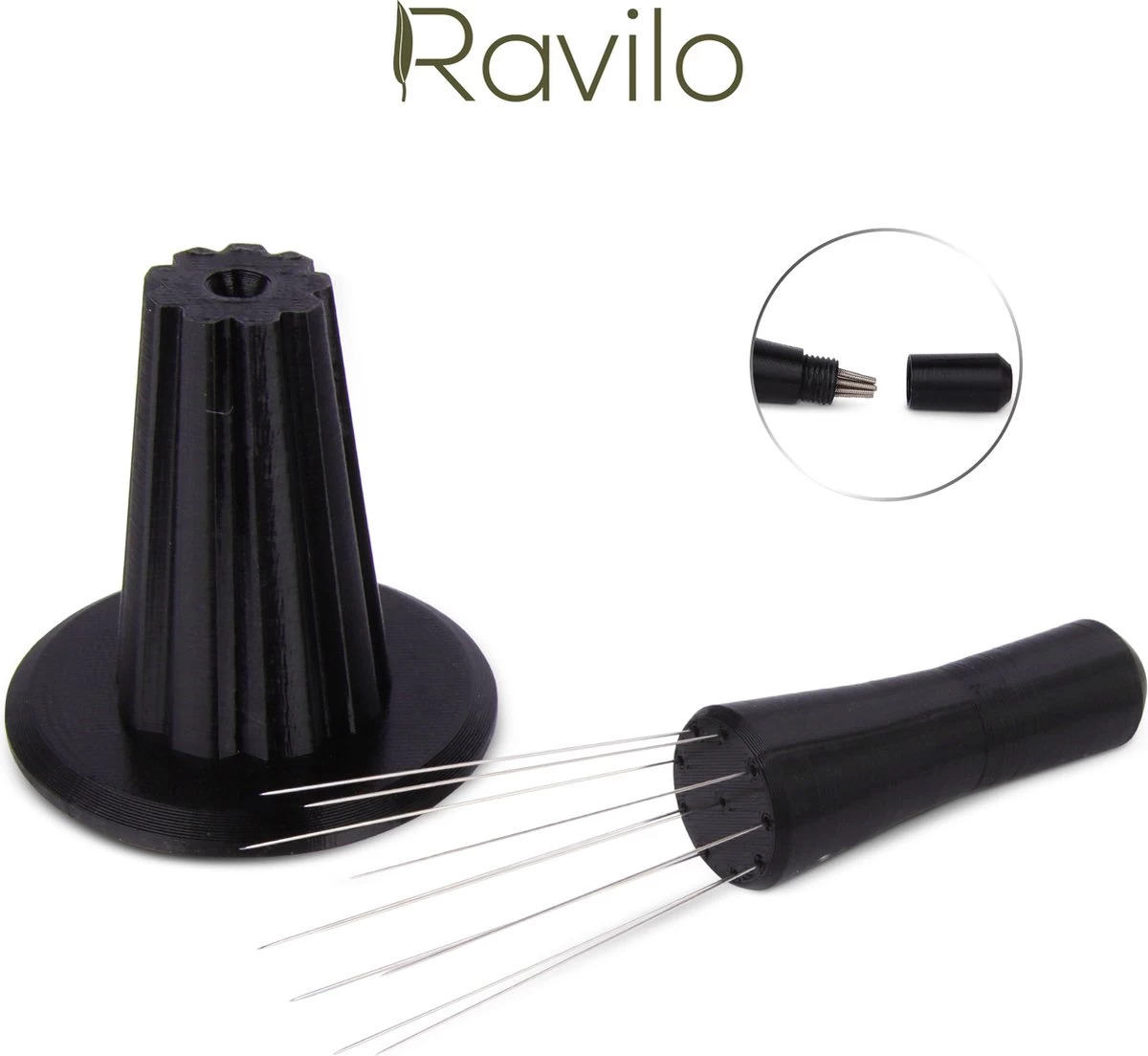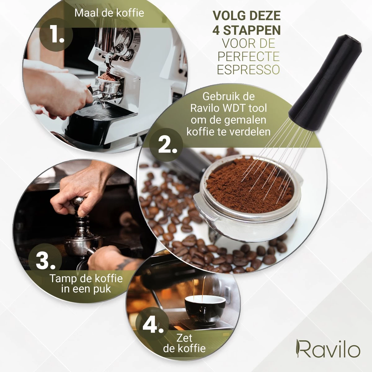 La technique de distribution Weiss est une méthode de préparation de la rondelle de café où vous utilisez de fines aiguilles pour répartir uniformément votre mouture sur votre rondelle. Après avoir moulu le café dans le porte-filtre, des grumeaux peuvent se former dans la mouture. Avec les aiguilles de l’outil Ravilo® WDT, ces grumeaux peuvent être cassés et la mouture peut être répartie uniformément. Il se fait principalement avant l’infusion de l’espresso pour réduire la canalisation et mieux extraire votre café. Cela peut être particulièrement utile pour les moulins à grains qui ont tendance à s’agglutiner lorsqu’ils sont broyés, mais cela facilite également la distribution, même si votre moulin n’est pas particulièrement sujet aux amas.
