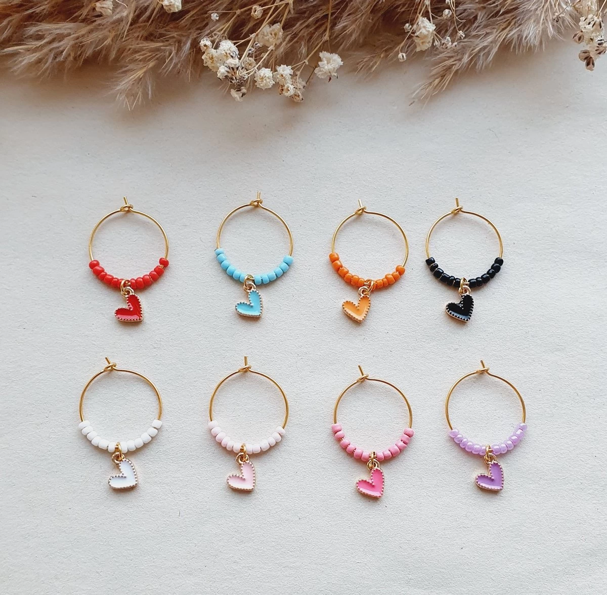 Pour tous les amateurs de vin un coeur de couleur eigen autour de votre verre à vin. Ainsi chacun pourra retrouver son verre, super pratique et du plus bel effet ! Total 8 pièces.