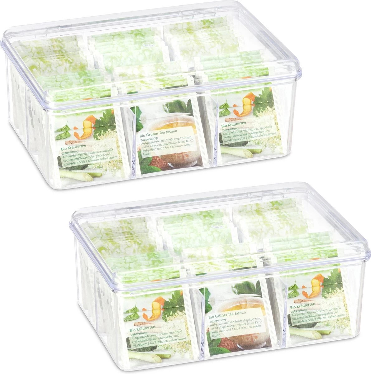 Relaxdays 2 X Boîte à Thé Transparent – Boîte à Thé 6 Compartiments – Organisateur De Sachets De Thé – Rectangle