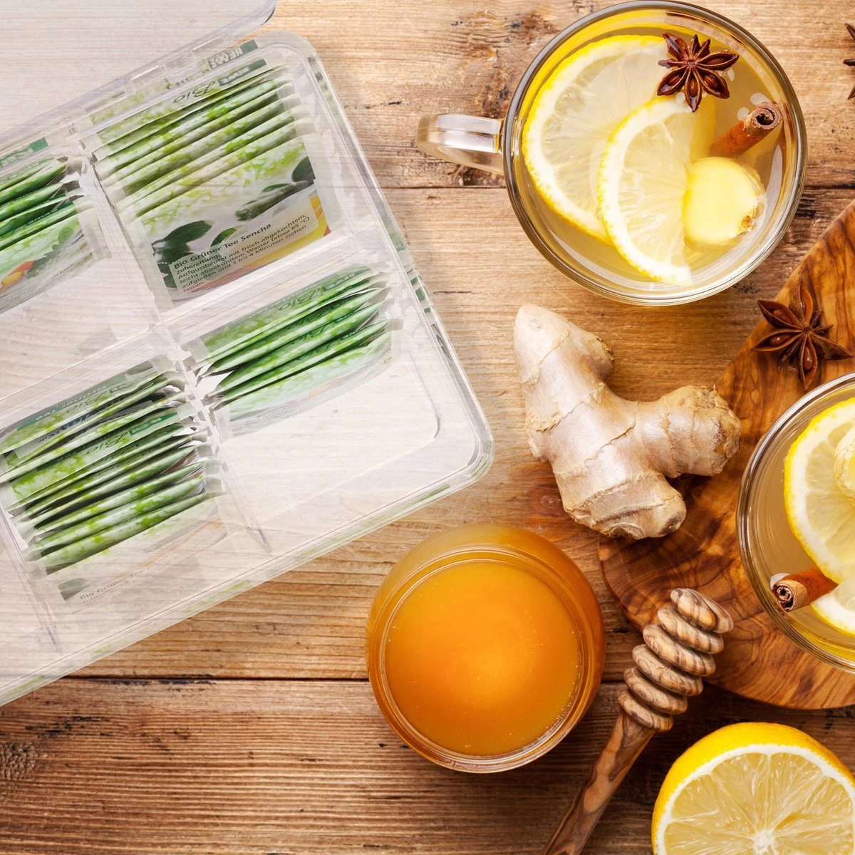 Vous aimez boire du thé et vous cherchez un endroit pratique pour stocker le thé? Ensuite, la boîte à thé est le bon choix. Le coffre à thé se compose de 6 compartiments de la même taille, dans lesquels peuvent contenir environ 15 sachets de thé. Grâce à la conception transparente du coffre à thé, vous avez toujours un bon aperçu du contenu. La boîte à thé stocke vos thés préférés secs et sans goût. Le coffre à thé peut être facilement nettoyé avec un chiffon humide. Boîte à thé en détail – Dimensions totales H x L x P: environ 9 x 21,5 x 14,5 cm – Dimensions par compartiment H x L x P: environ 7,5 x 6,5 x 6,5 cm – Poids : environ 250 g – Matériel: Plastique – Couleur: transparent – Lot de 2 boîtes de rangement pour les amateurs de thé – Rangement peu encombrant des sachets de thé – Conception transparente pour une bonne vue d’ensemble – Couvercle à charnière pour un accès rapide au contenu – Stockage à sec du thé pour la protection des arômes – Aussi pour les dosettes de café, les ingrédients de pâtisserie, les bijoux, les petits objets Contenu de la livraison – 2 x boîte à thé – La décoration n’est pas incluse dans la livraison
