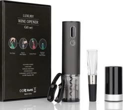 - Comprend un ouvre-bouteille électrique, un bouchon à vin, un bec verseur, un coupe-capsule et un câble USB-C