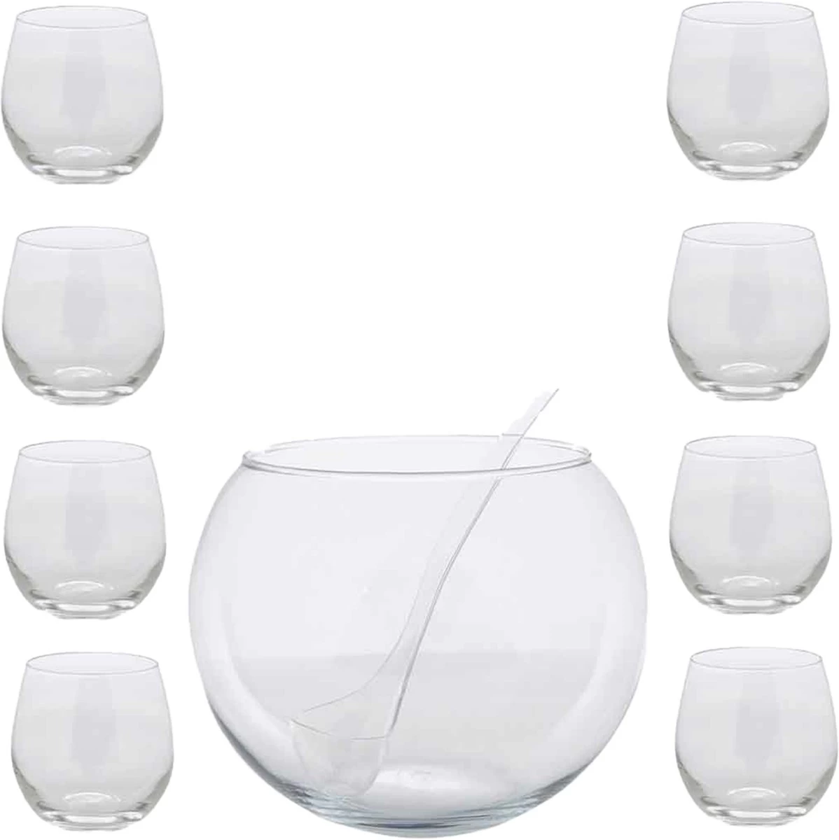 Ce magnifique et élégant ensemble Panc Party de 10 pièces de Royal Leerdam est très approprié pour de savoureuses boissons fraîches, telles que de délicieux cocktails, des bols ou de la sangria espagnole avec des fruits. Cet ensemble se compose d’un grand bol d’une contenance de pas moins de 12,8 l, de 8 verres à eau de 47 cl et d’une louche pratique. Le verre transparent fait ressortir encore mieux la couleur. Utilisez cet ensemble Panc Party par exemple lors d’un barbecue d’été, un anniversaire avec de nombreux invités ou comme bol de limonade lors d’une fête d’enfants! De plus, cet ensemble de fête est emballé dans un coffret cadeau festif, il est donc également très agréable de l’offrir en cadeau! Caractéristiques principales : Produit : 1 bol, 8 verres à eau, 1 cuillère de service Capacité : bol : 12,8 l, verres à eau : 47 cl Matière : Glas Couleur : Transparent Va au lave-vaisselle : Oui Résistant à la chaleur : Non Royal Leerdam Royal Leerdam synonyme de qualité et a produit de la verrerie depuis 125 ans avec la combinaison parfaite d’un design élégant et de détails fonctionnels. La large gamme de verrerie Royal Leerdam est donc un élément indispensable du marché domestique et professionnel. Parce que toute la verrerie produite à Royal Leerdam a la même qualité constante. La verrerie extrêmement claire fait vraiment ressortir la couleur des vins et des boissons. De plus, la verrerie est faite de verre solide et durable, ce qui rend toute la verrerie résistante aux chocs et également facile à nettoyer au lave-vaisselle. Royal Leerdam a une excellente verrerie pour chaque application et chaque table!