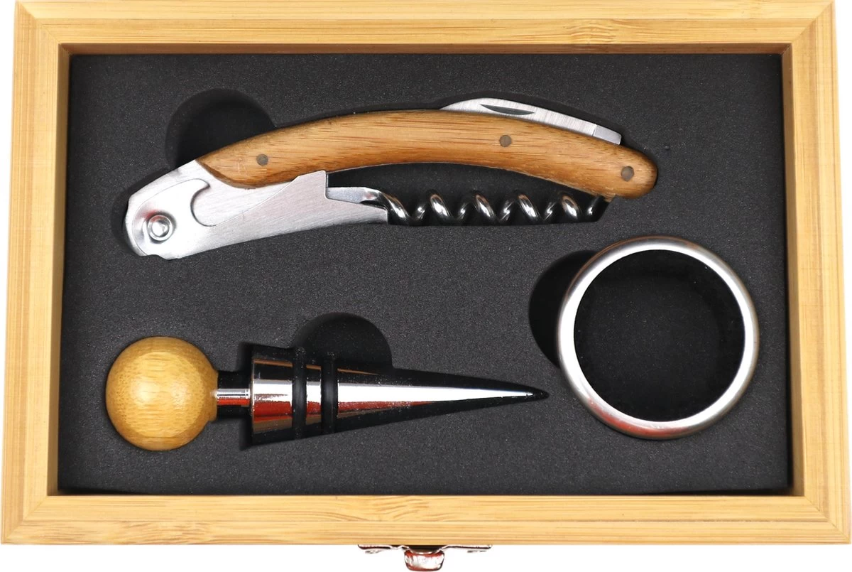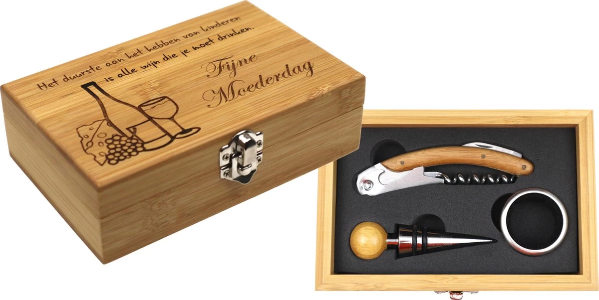 Si c’est le cas et que vous êtes toujours à la recherche d’un joli cadeau pour la fête des mères, cet ensemble à vin pourrait être le cadeau parfait. L’ensemble est emballé dans une belle boîte en bambou et se compose d’un tire-bouchon, d’une bague à vin et d’un bouchon, fabriqués à partir d’une combinaison d’acier inoxydable et de bambou.